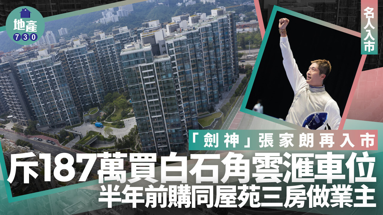 兩屆奧運金牌得主、「香港劍神」張家朗再入市!繼去年7月份購入大埔白石角雲滙一個三房單位晉升做業主後,最新斥187萬元購入同屋苑一個車位,即半年間合共擲逾1,788萬元入市。