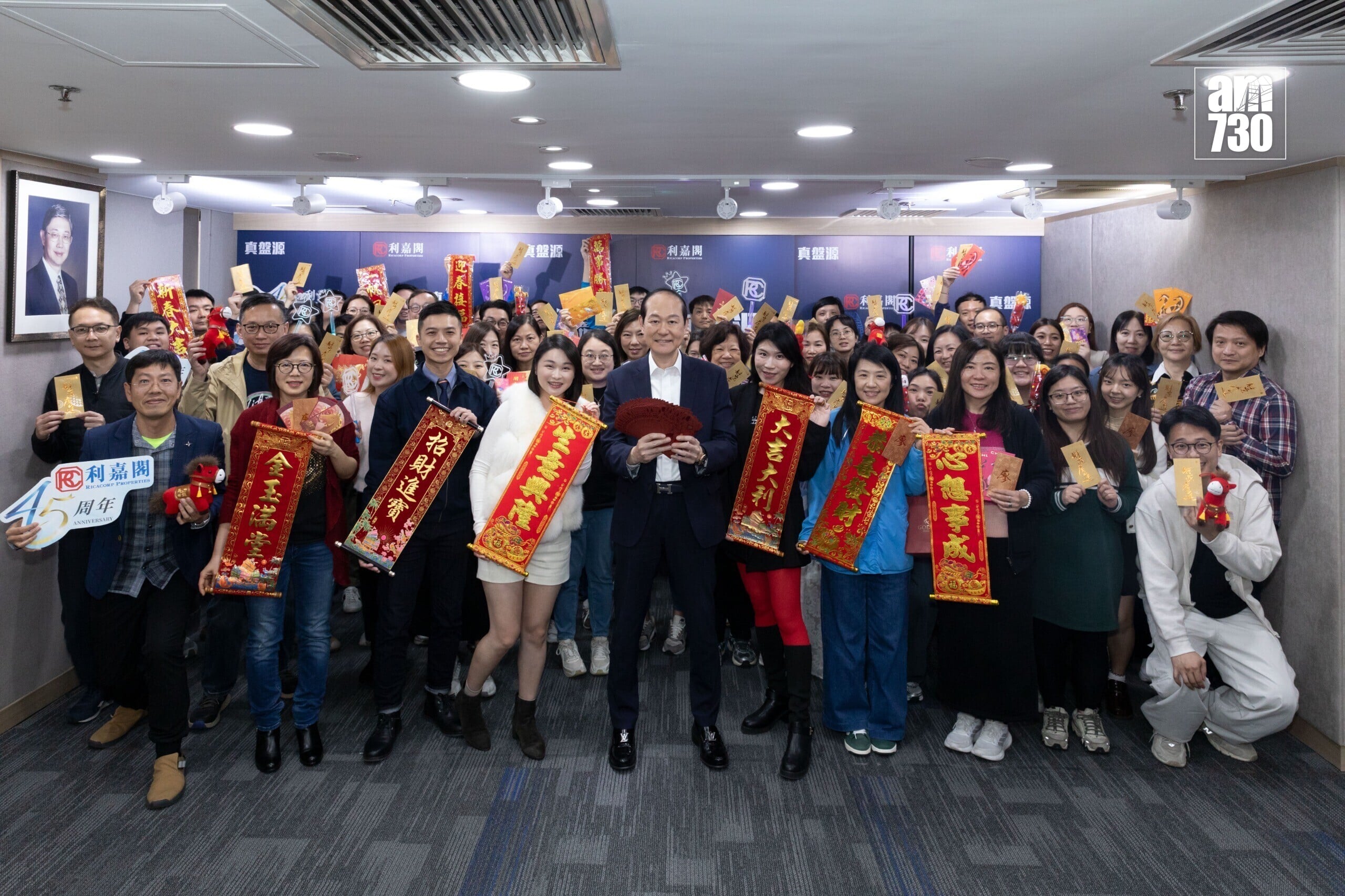 丙午年駿馬獻瑞,年初四開工大吉。利嘉閣地產不但向全體二千多名員工派發開工利是,總裁廖偉強今日(20日)更於灣仔總行,向近百名後勤同事拜年兼大派利是,並祝願各後勤同事龍馬精神,萬事如意,身體健康,工作順利。