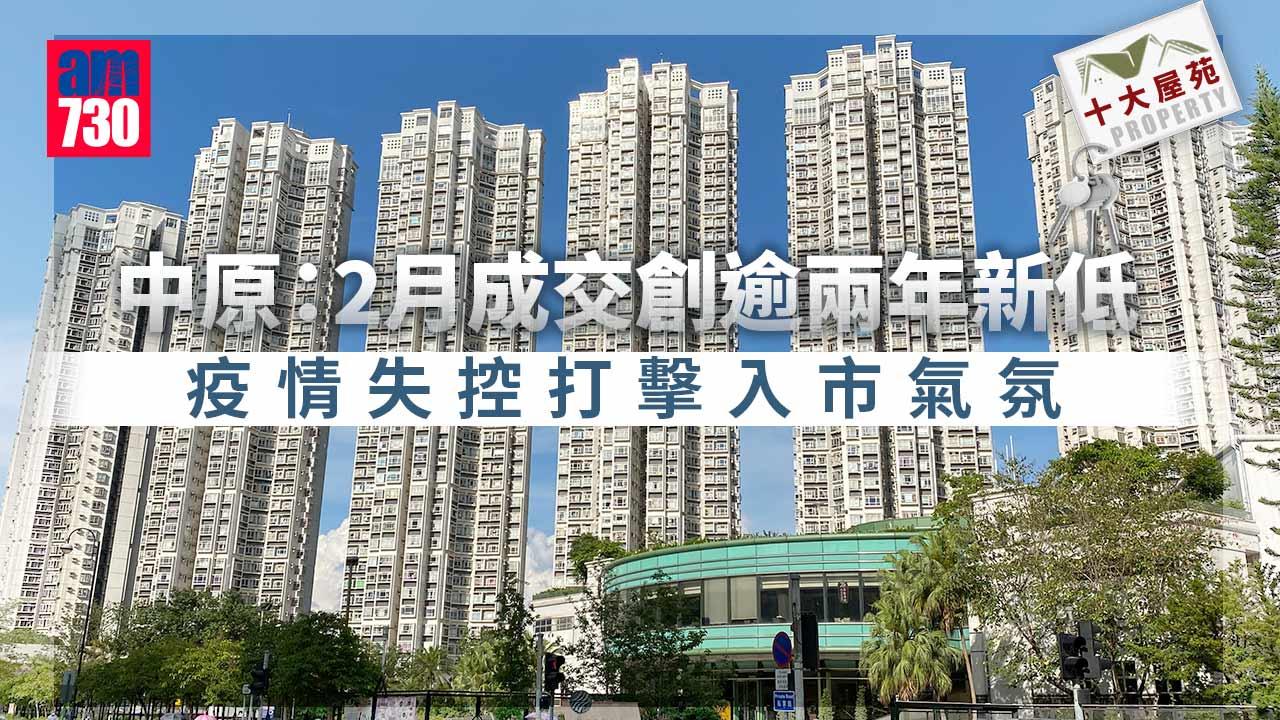 中原地產公布,十大屋苑2月全月錄得150宗成交,較1月減少20%,成交量創2019年12月後逾兩年新低。