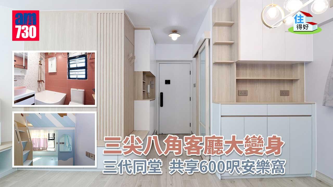 (題目由編輯所擬,原題為600呎單位三代同堂 一招拉直鑽石廳兼有收納空間)