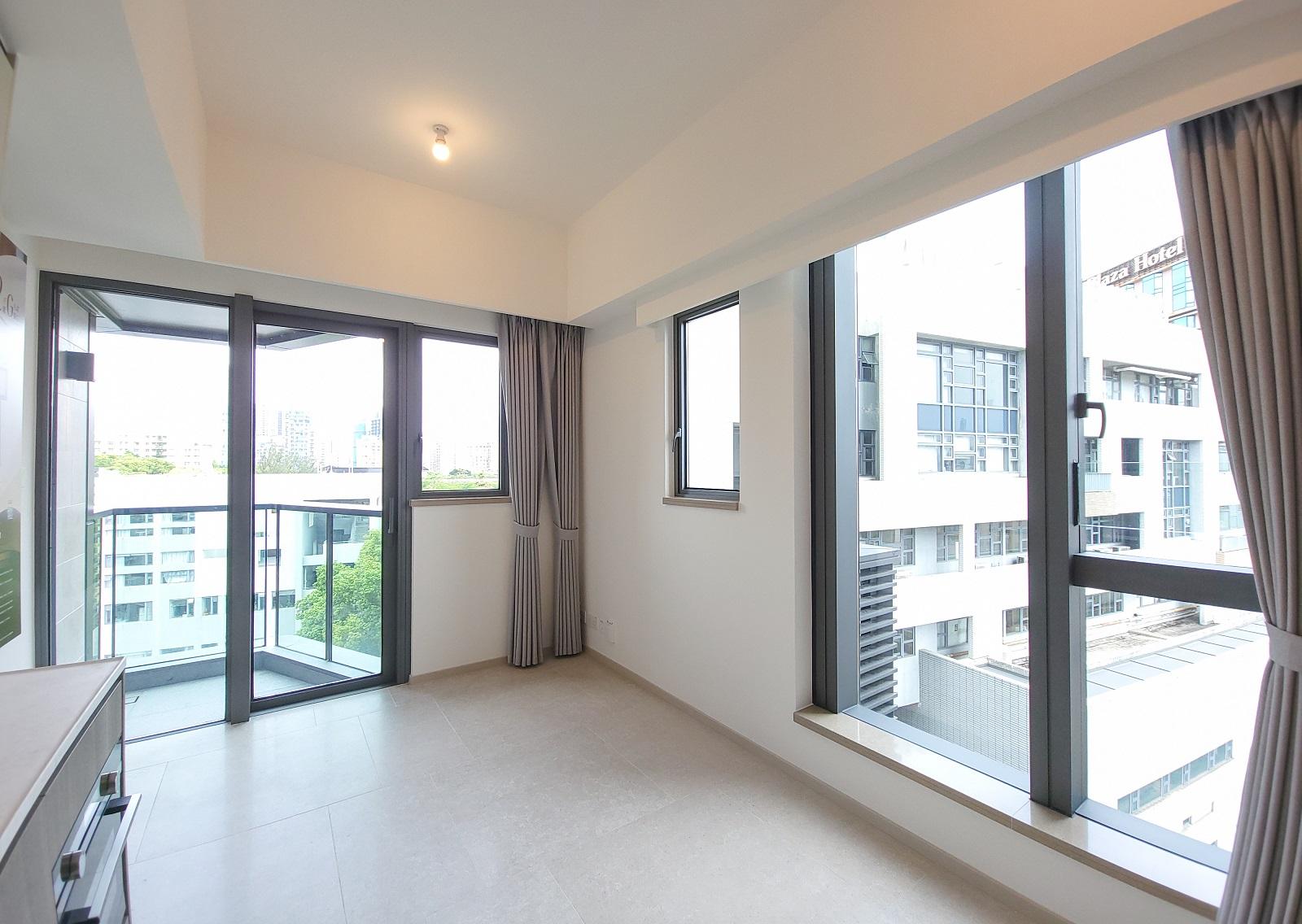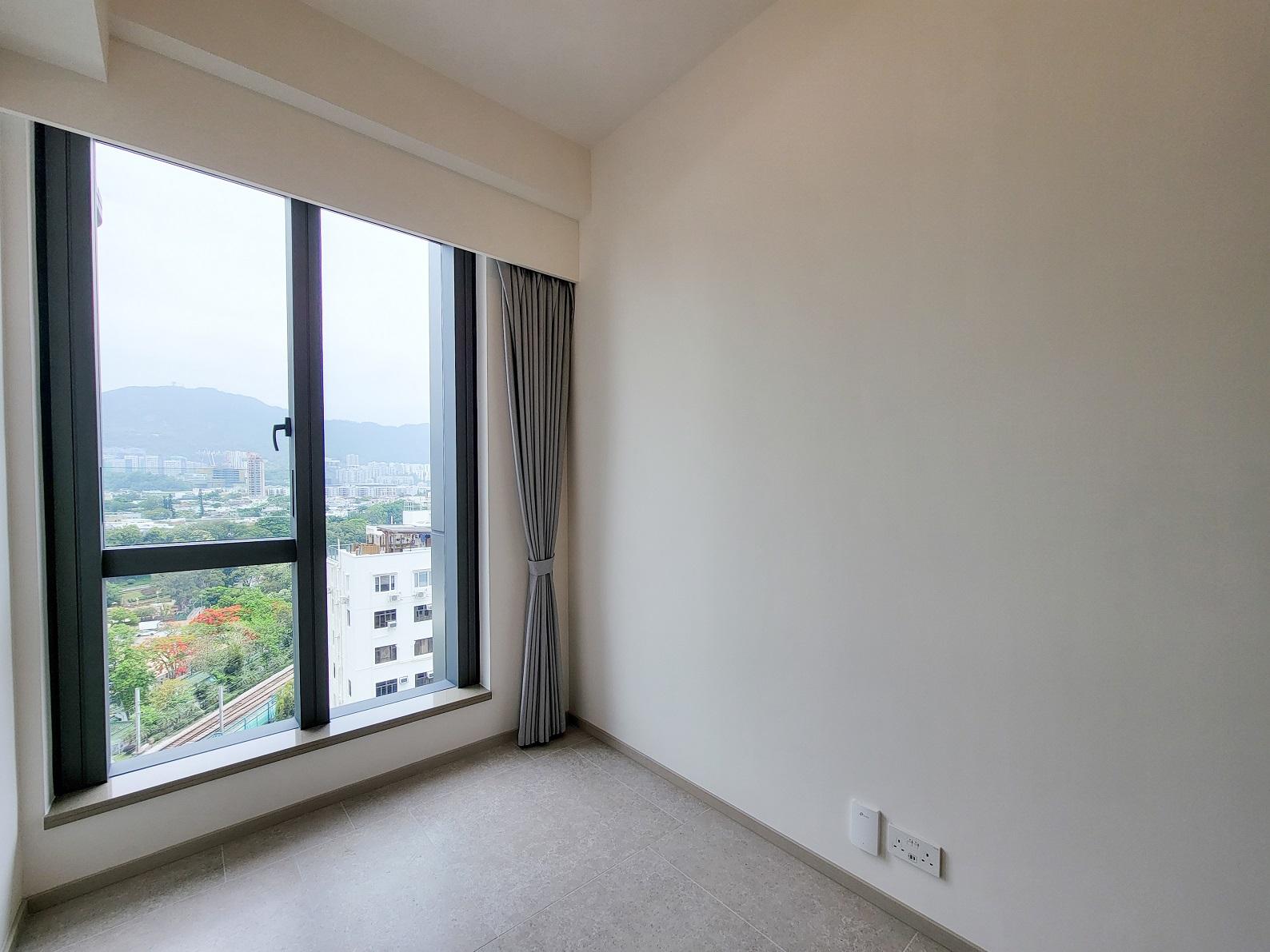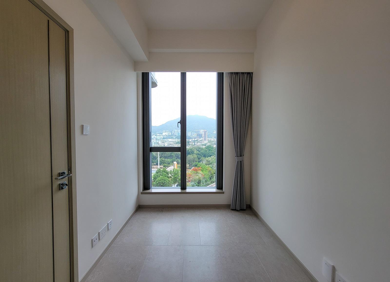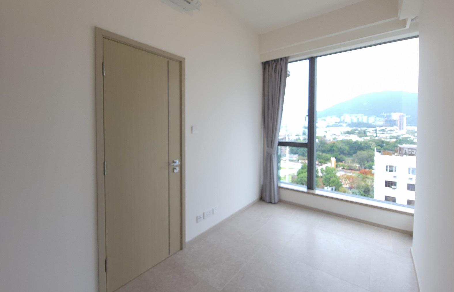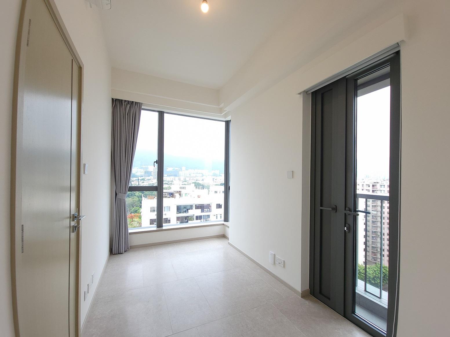 睡房與客廳的景觀同向,睡房地台貫徹以淺色為主調,間隔方正,預留衣櫃位置,放置雙人床後,空間感仍十足,配以廣角雙玻璃窗戶設計,另連接16方呎工作平台,提供對流作用。