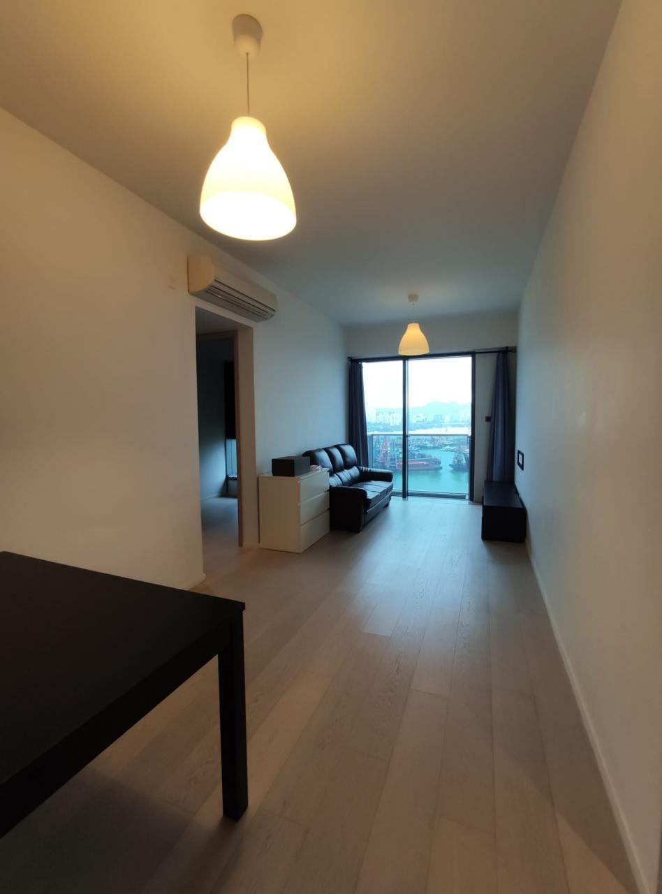 上述放租單位為䨇寓北翼中層A室,實用面積563呎,兩房間隔,連車位叫租2萬元,平均呎租約36元。由於屋苑樓齡只有4年,單位內部基本上是發展商裝修,但簇新企理,並連部分傢俬和電器放租,對租客來說頗為方便。單位面向屯門避風塘及遠望青山灣海景,俯望則為園景,而且大廳和兩個睡房均面向避風塘一帶,景致非常開揚吸引。