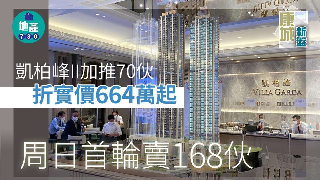 市場焦點全新盤、由信和置業(083)、嘉華國際(173)、招商局置地(978)及港鐵(066)合作發展的將軍澳日出康城凱柏峰II今日(13日)加推第2號價單,涉70伙,維持最高16%折扣優惠,折實售價由664.77萬元起,折實平均呎價18,688元,較首張價單的18,378元,高約1.7%。同時公布首輪銷售安排,將於周日(17日)公開發售168伙,周六(16日)下午3時截票。