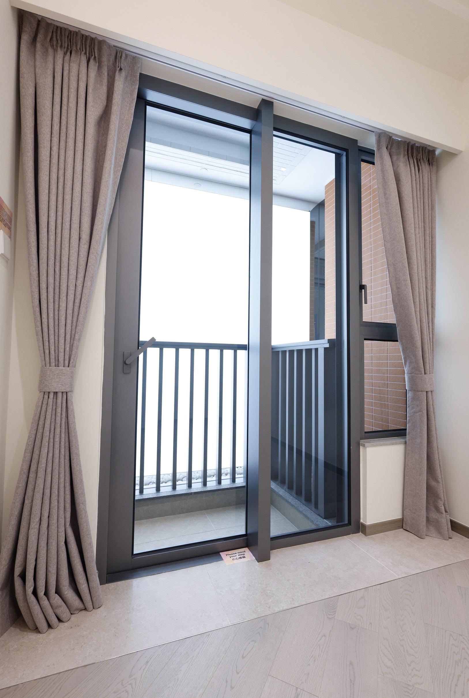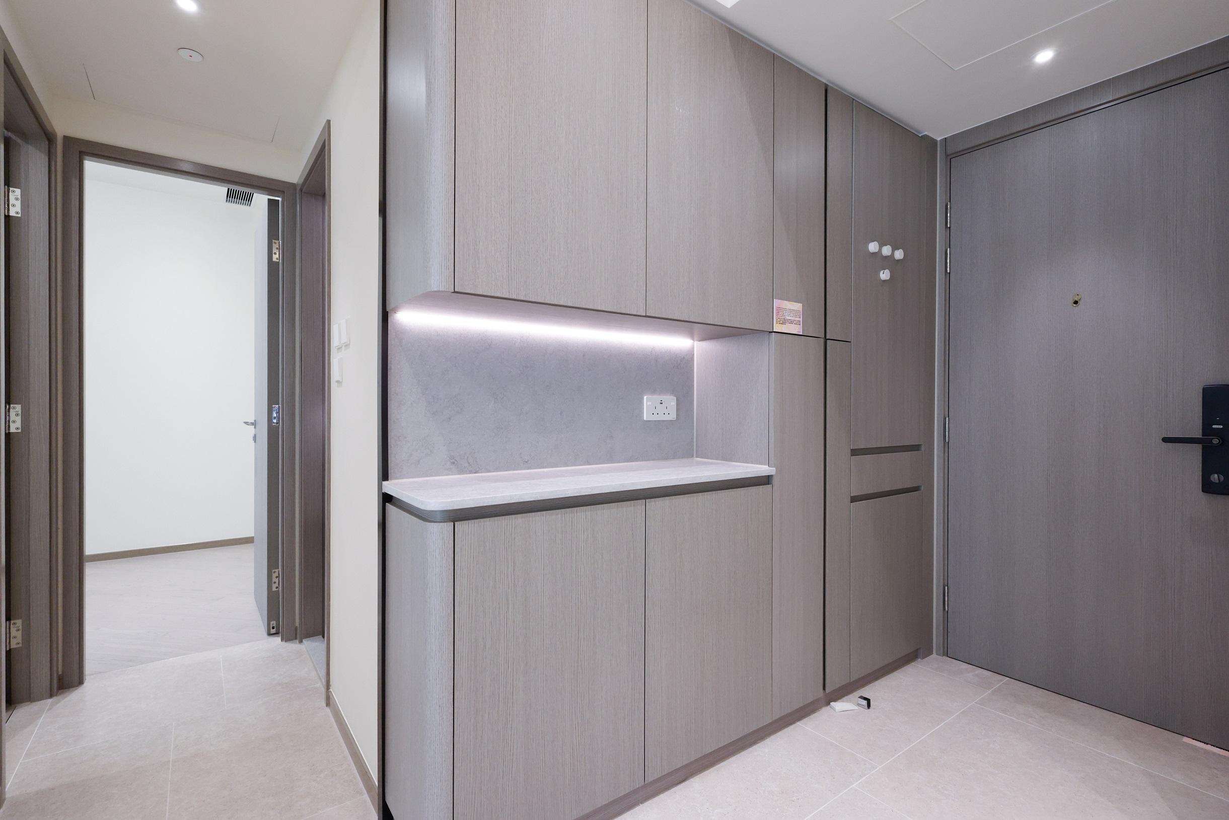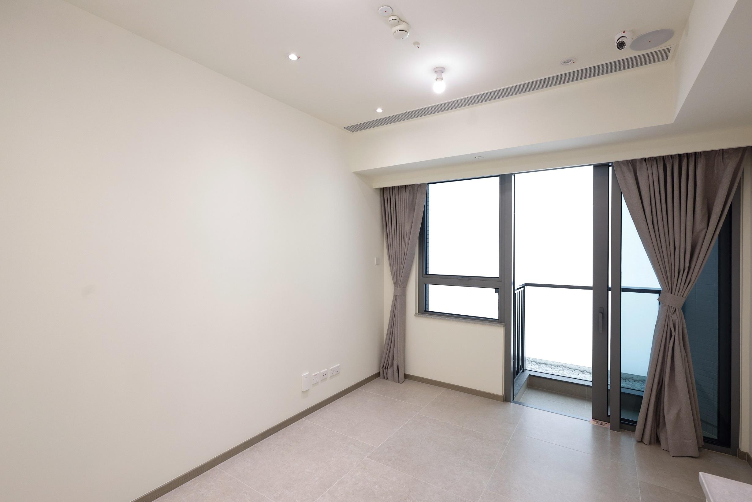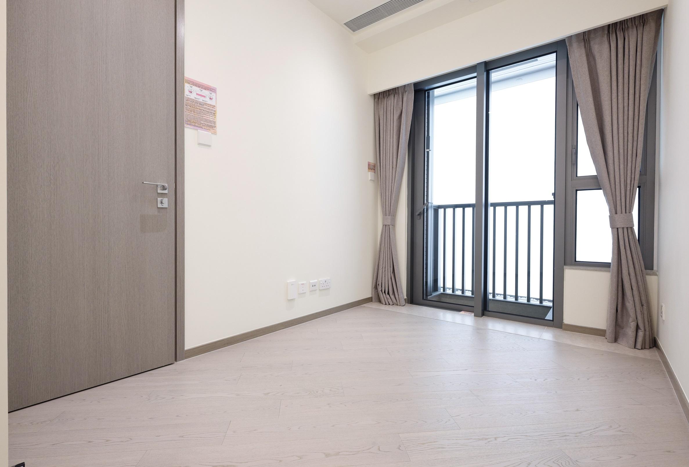 單位客飯廳、主人睡房及睡房1均享同一座向景觀。此外,設計師貼心強化房門隔音設計,配以防塵及隔音片。單位兩間房間配備複合窗簾設計,優化採光及遮光效能;睡房地台以複合木地板鋪砌。睡房1設計方正,室內空間靈活實用;主人睡房相連的工作平台,配上布藝窗簾,遮光之餘空間更為實用。房內更預留有衣櫃位置,牆上更配有USB插頭的電插座。