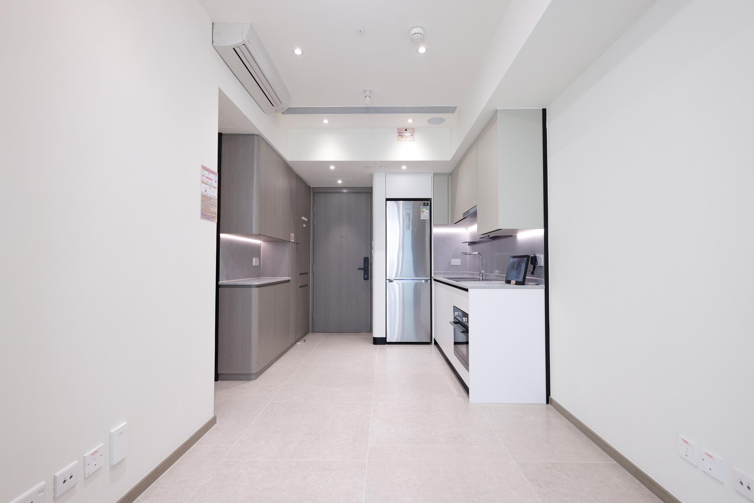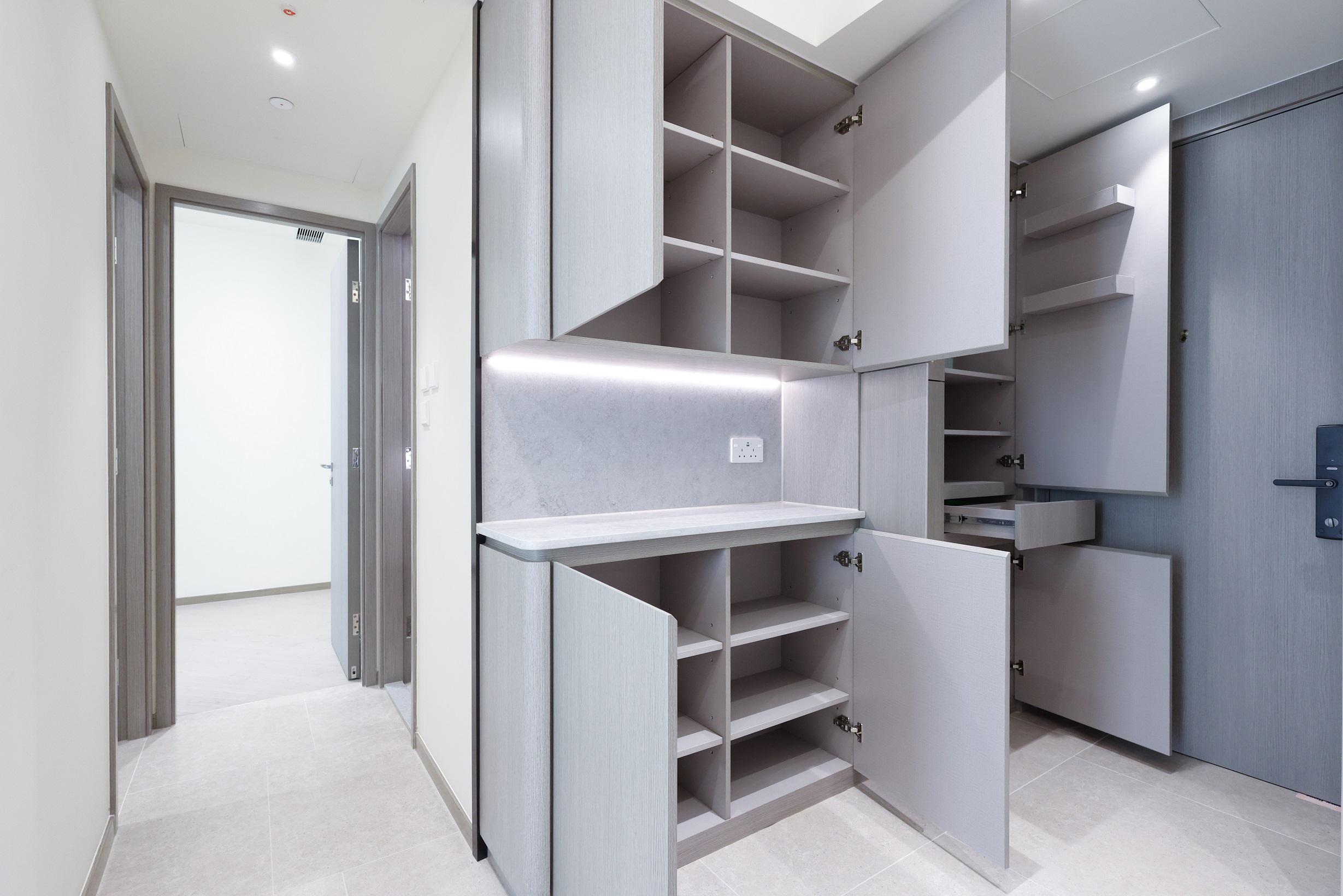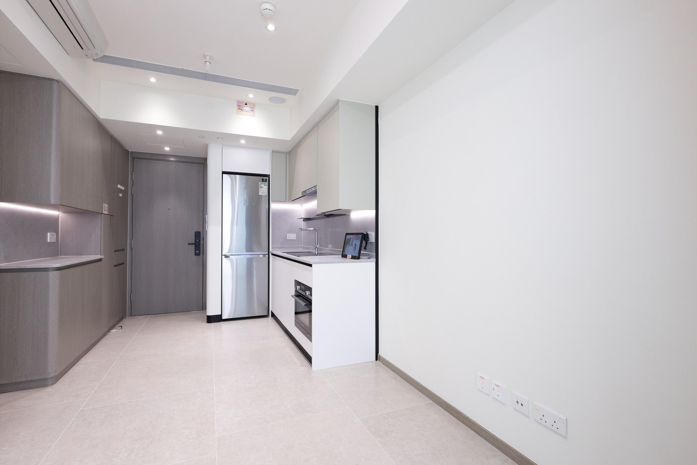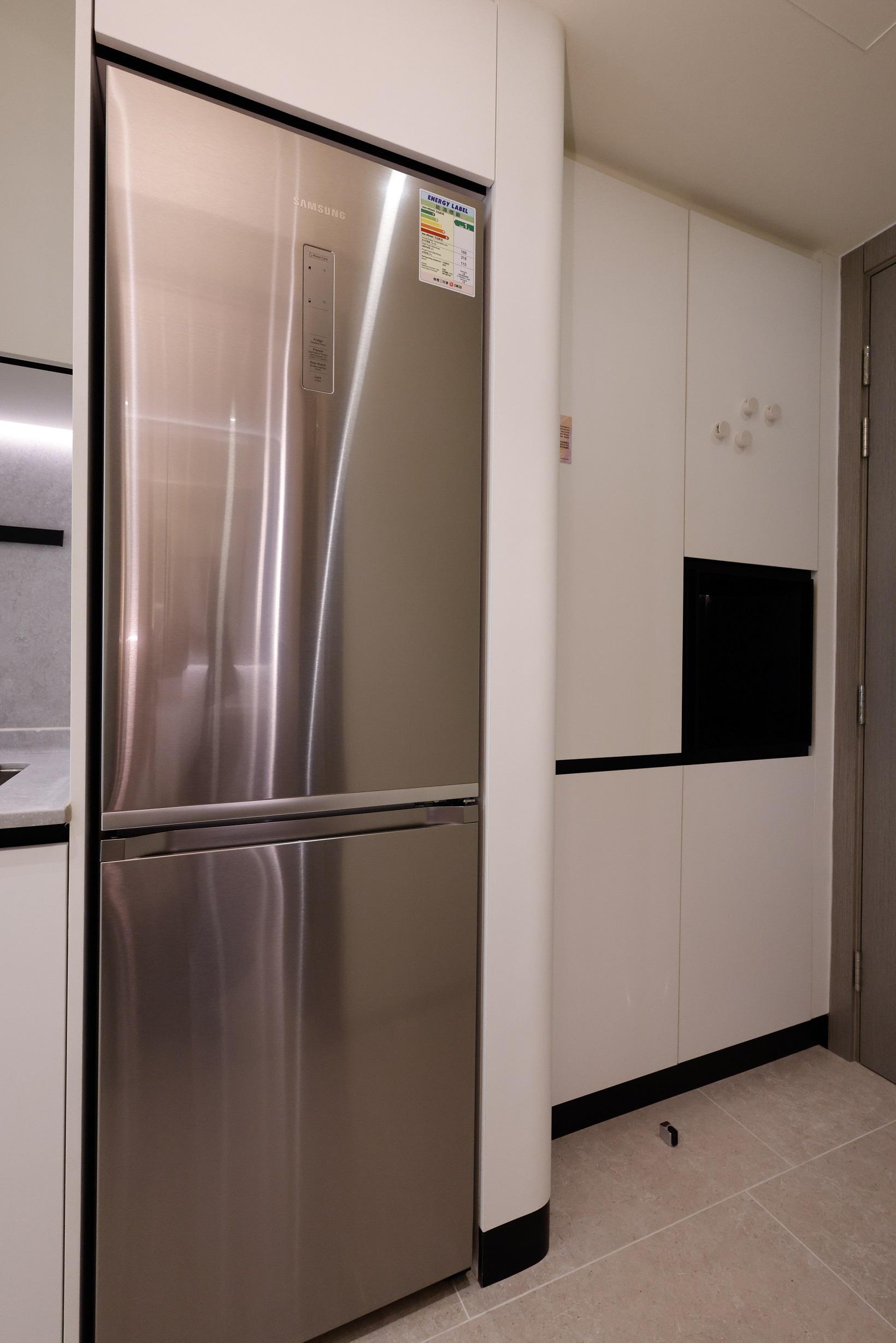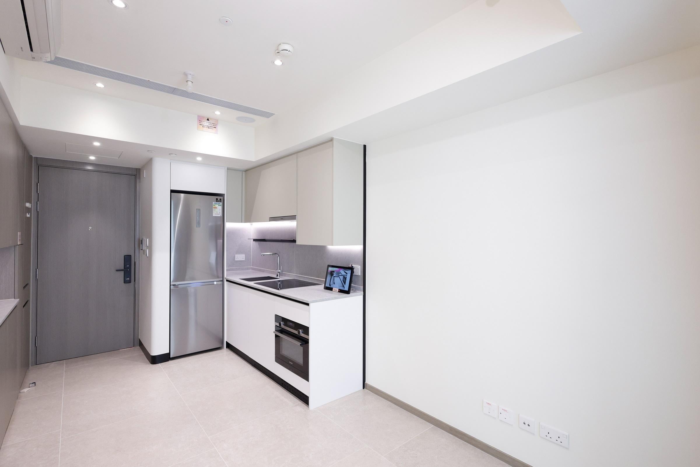 單位呈長方形設計,空間實用。開放式廚房設計,配襯高雅象牙白色及淡灰色廚櫃,底部加設隱藏式抽屜,同時廚櫃內設收納式摺疊餐桌,用餐時住戶拉出淺灰色餐桌,放置椅子後,即變成用餐區。洗滌盤更貼心配備疏水卷軸,方便住戶作瀝水之用。廚房配備精選一系列專業廚房家電組合,包括Siemens七合一微蒸烤焗爐、抽油煙機及電磁爐;Samsung雪櫃;Whirlpool洗衣乾衣機,皆為嵌入式設計,令空間更為優雅一致。此外,客飯廳更安裝遮光布藝窗簾,貼心實用。