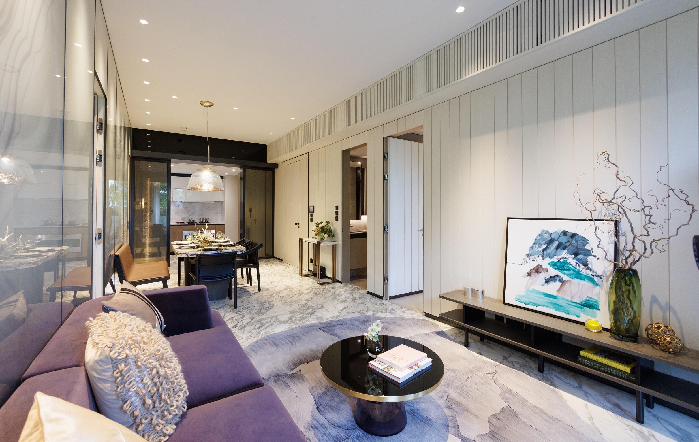 豪宅新盤|林海山城現樓1160方呎三房示位 大理石應用於餐桌和牆壁 貫穿客飯廳