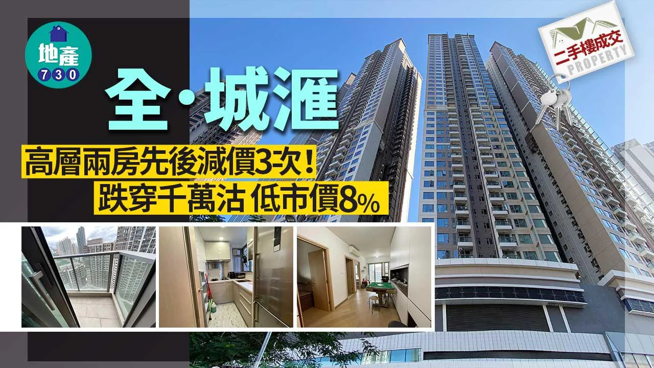 先後減價3次!全.城滙高層兩房跌穿千萬沽 低市價8%