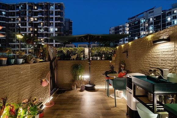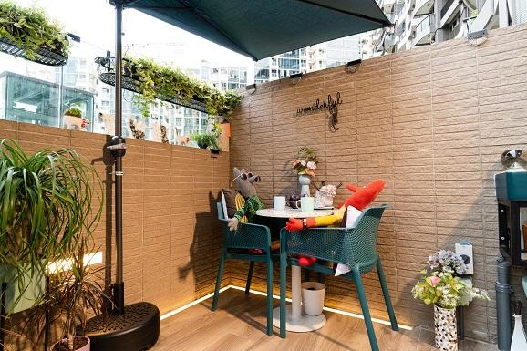 戶主亦特別鍾情日式設計,設計上亦運用了很多木條子的元素作為修飾,至於另一個亮點,是其單位戶外的小花園,採用了日式庭園的設計風格,跟全屋設計互相呼應,種滿了綠色植物,雖然空間不大,但已散發陣陣禪味,令人猶如置身於城中的綠洲。