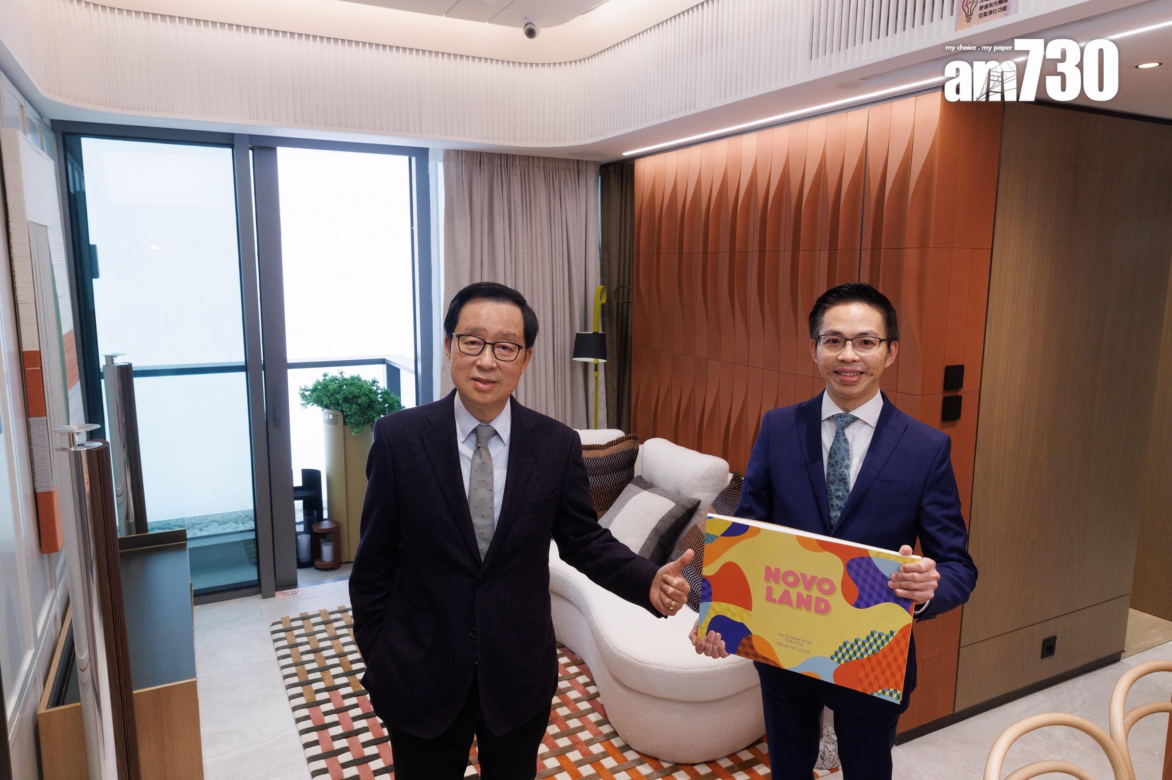 雷霆(左)稱,NOVO LAND第2B期將於下周初公布首張價單,單位定價會參考第1期價錢;右為陳漢麟。(蘇文傑攝)