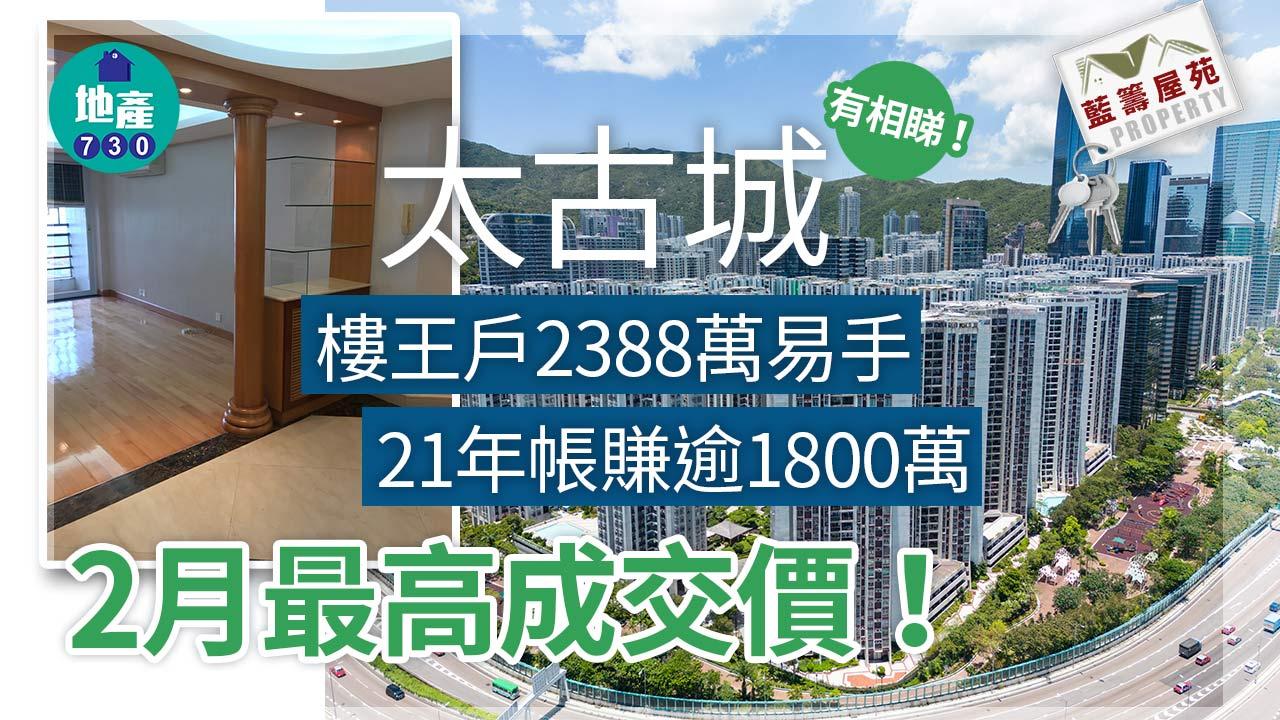 藍籌屋苑|太古城樓王戶2388萬易手 2月最高成交價 21年帳賺逾1800萬