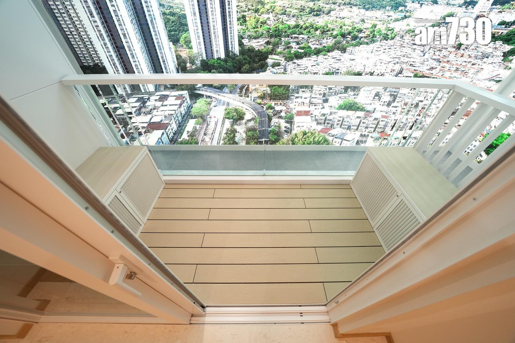 以22樓Q室為藍本搭建的兩房示範單位,實用面積454方呎,22方呎的露台與16方呎的工作平台,以及冷氣機平台合拼成特大的戶外活動空間。單位大門側設有一組高身的儲物櫃,大門旁的告示板附有磁吸功能,方便住戶計劃日常生活,儲物櫃內附多格層板,提供貯物空間,備有三腳插座、USB插座及無線充電器。