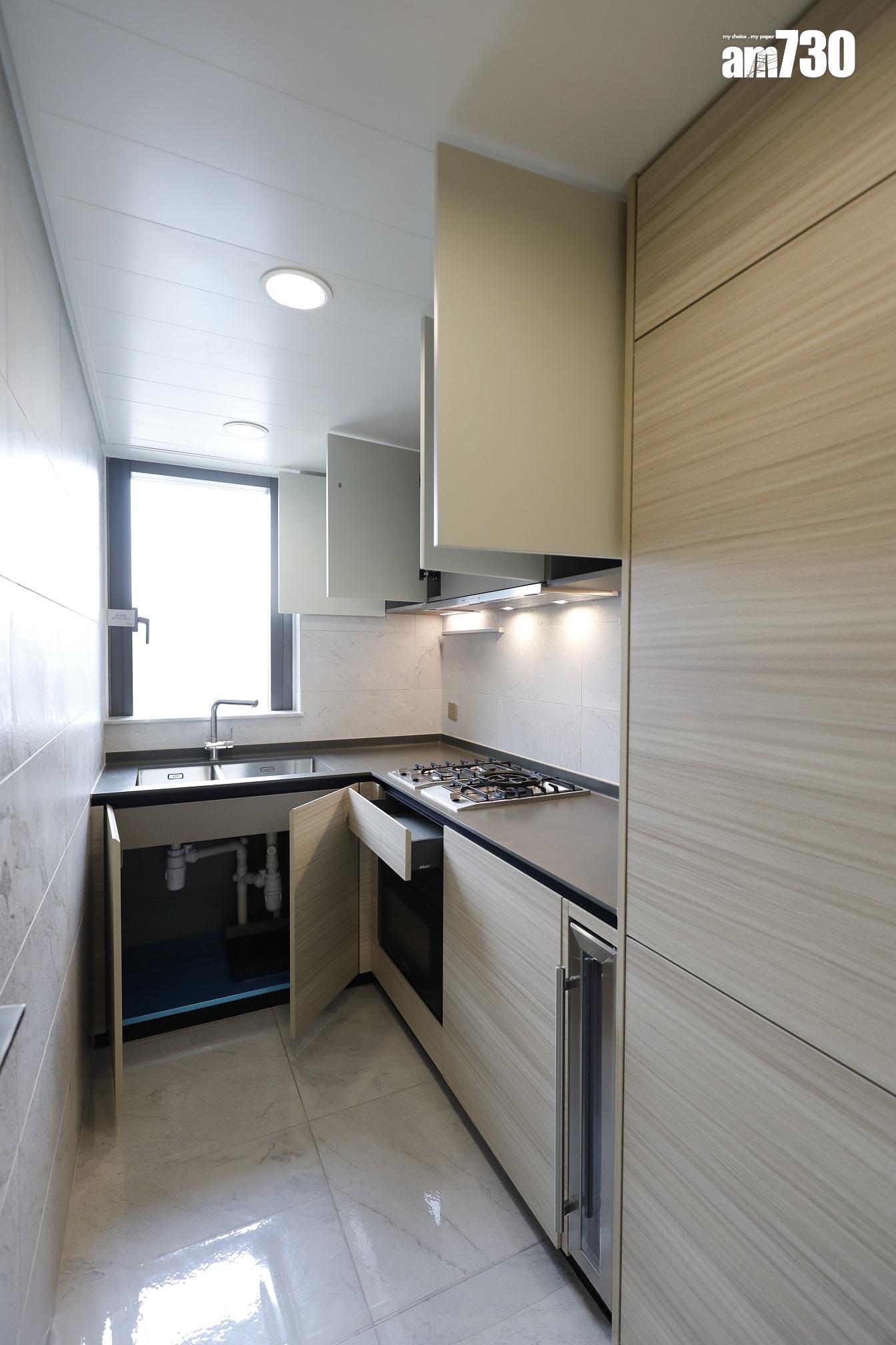 主人套房長約3米,闊約2.9米,空間充裕足夠容納較大型家具,並設面積約16方呎工作平台,與客廳景觀同向,享城門河及沙田市中心開揚景色。隨屋附送名貴家電,包括德國名牌Miele氣體煮食爐、組合式雙頭氣體煮食爐、蒸焗爐及抽油煙機,亦配備Panasonic雪櫃及法國皇室品牌De Dietrich洗衣乾衣機,另亦設Vinvautz酒櫃。