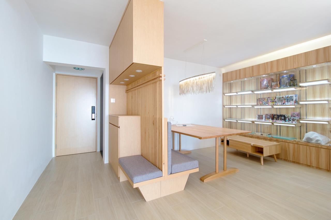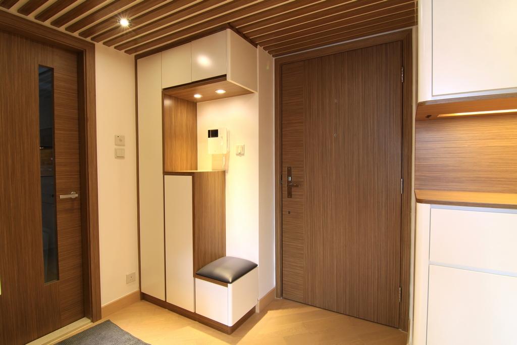 每天出入大門必定會經過玄關位,想換鞋可以舒服一點,可以在玄關鞋櫃加裝座椅位置,另外除了考慮外觀設計外,亦要做好內櫳設計考慮,增加收納鞋子空間。