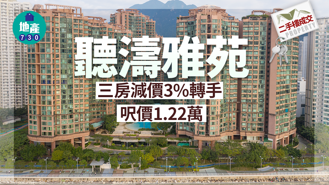 世紀21奇豐物業海典灣分行區域經理胡佩碧表示,聽濤雅苑4座中層A室,實用面積約788方呎,三房間隔,坐向西北望池海景。單位放盤兩個月,原叫價1,000萬元,最終累減34萬元或約3.4%,至966萬元承接,呎價約12,259元。