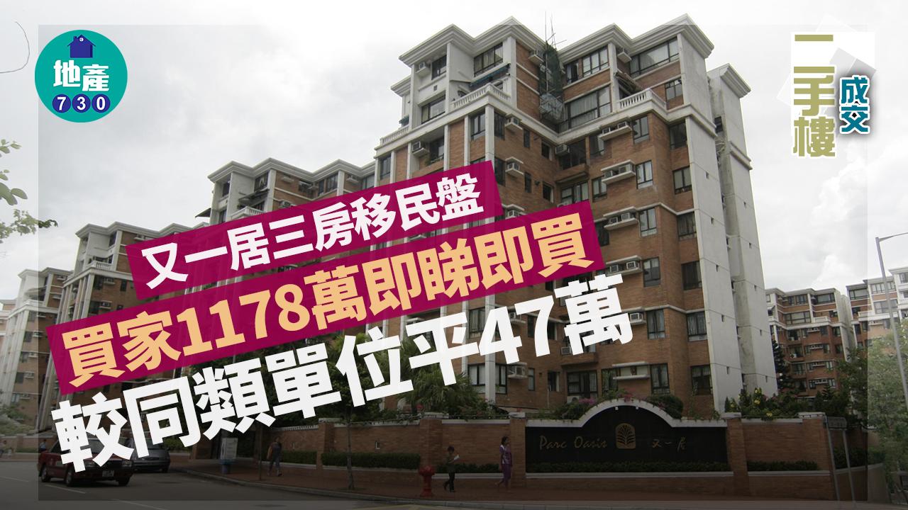 二手樓成交|又一居三房移民盤較同類平47萬 外區客1178萬即睇即買