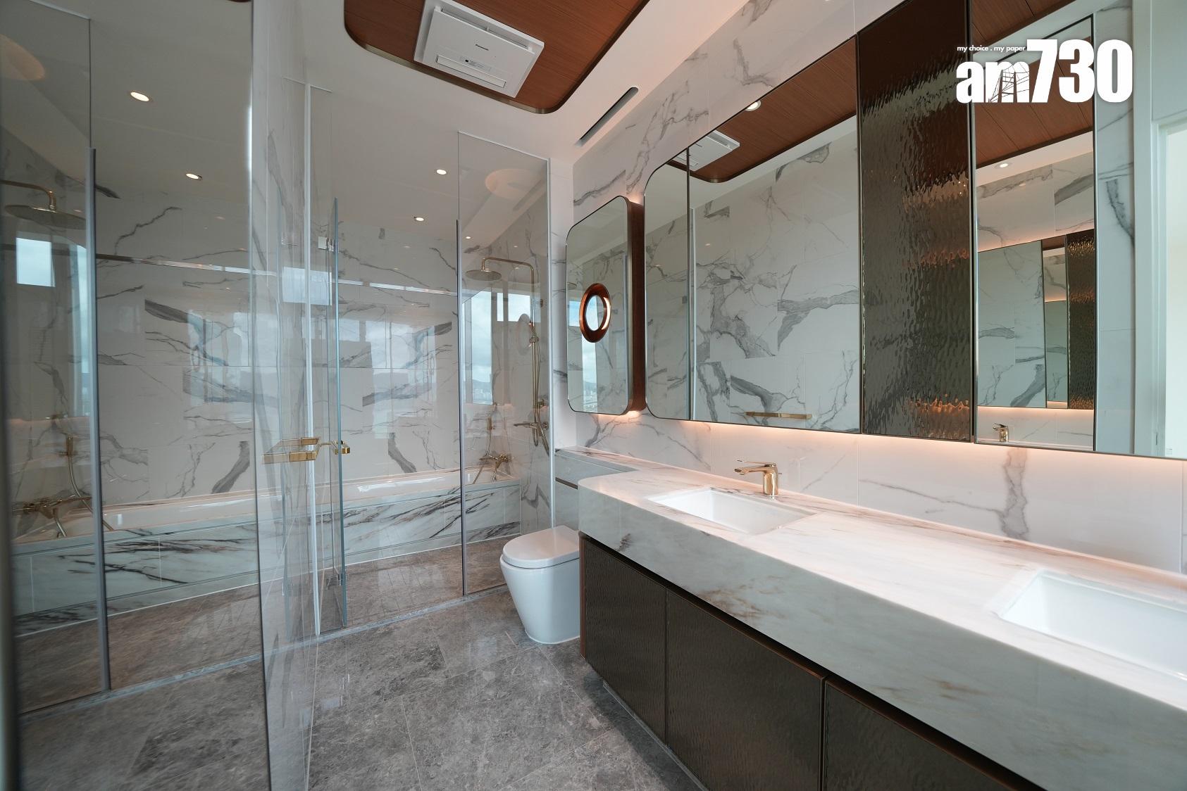 飯廳放置4人餐桌後,活動空間仍然充裕。廳區擺放梳化及小茶几,外連露台,可望河景,並採用玻璃幕牆設計,光猛開揚。兩間睡房間隔方正實用,主人睡房約3米闊。睡房與客廳景觀同向,設有倘大玻璃窗,採光度充足。浴室不設窗戶,配備Panasonic浴室寶。