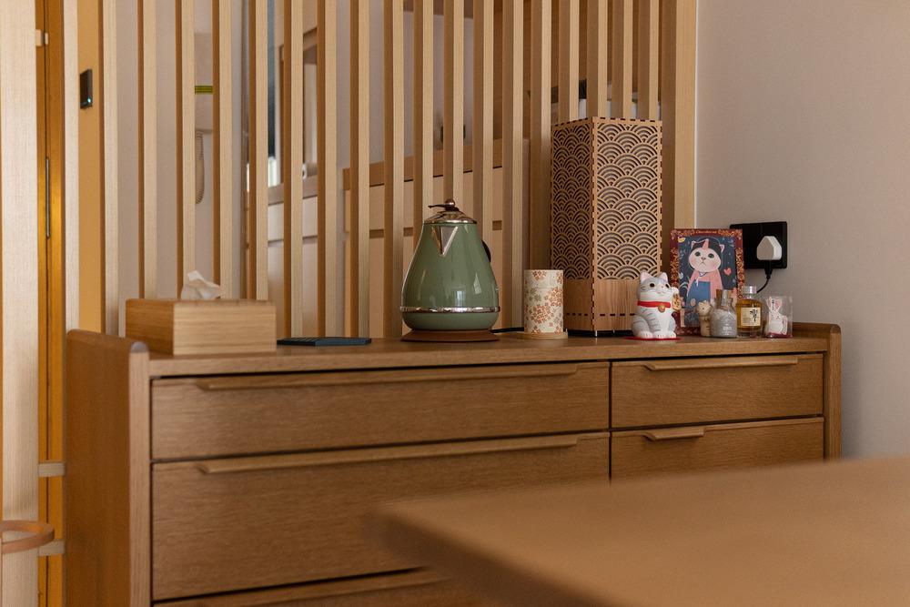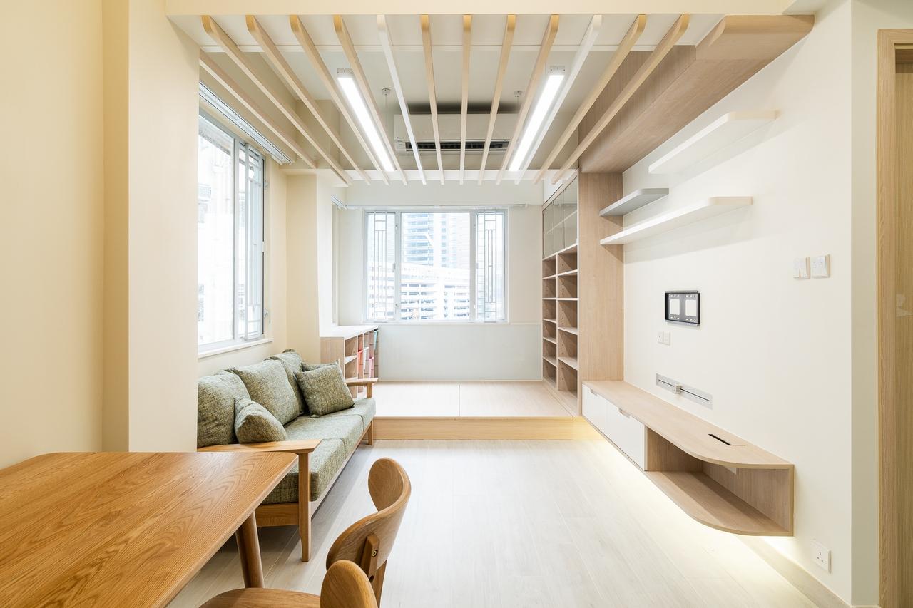 香港住宅空間細小,樓底亦偏矮,特別是舊樓,如果高身或者體積較大的傢俬,會比較容易造成壓迫感,日式設計通常使用較矮身、輕巧的傢俬。「貼地」的傢俬能讓細小的空間變得寬敞,特別是梳化、電視櫃、茶几及床等,營造一種溫馨及平易近人的感覺。除了較矮之外,日系傢俬的線條較簡約,比較注重實際功用及舒適度,而不加裝飾,這樣就能節省多餘的線條,令家居保持簡潔。