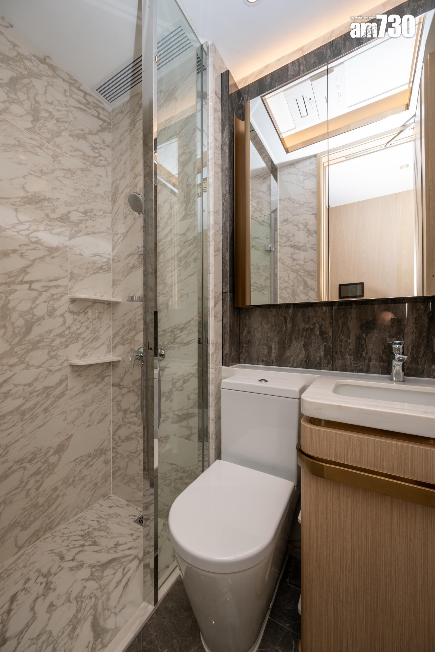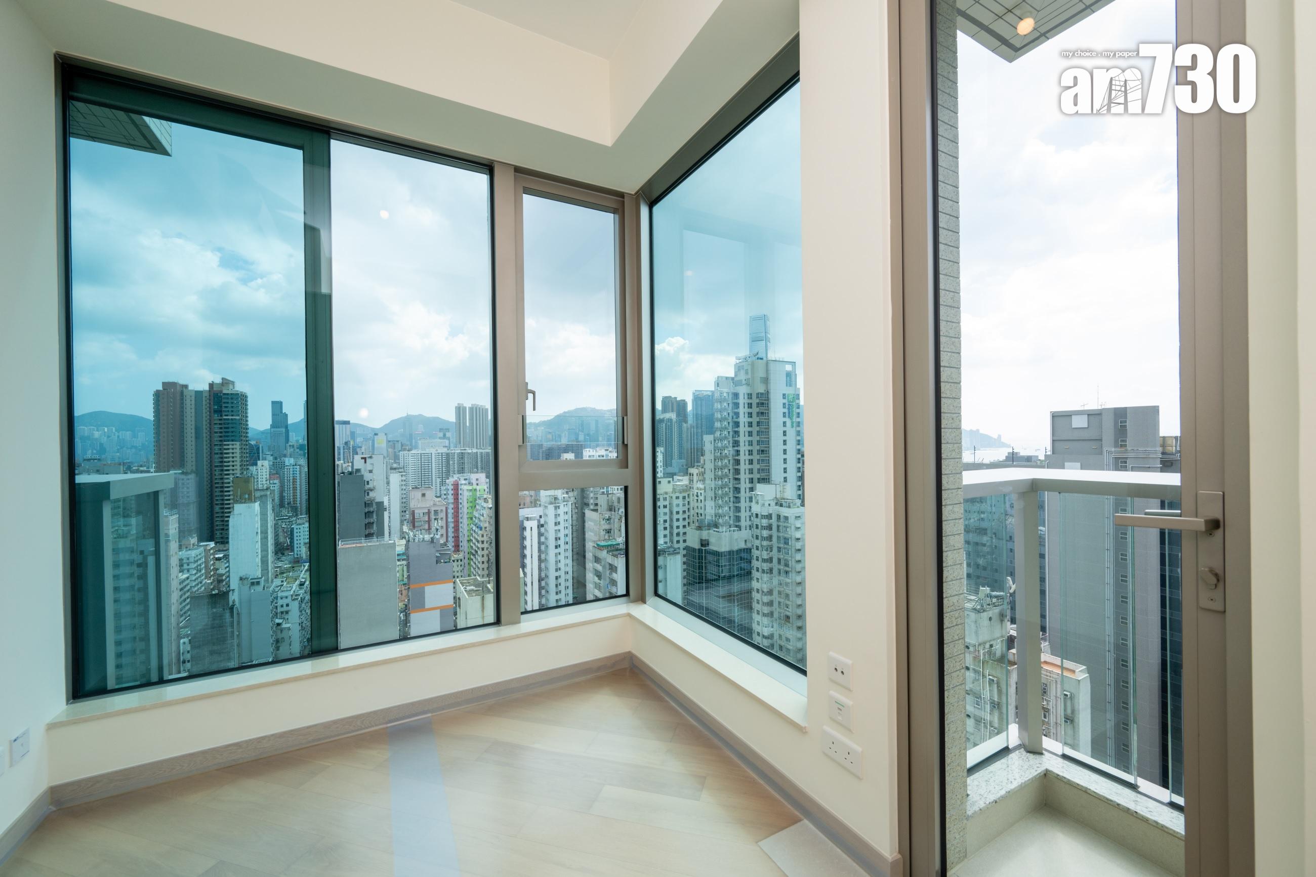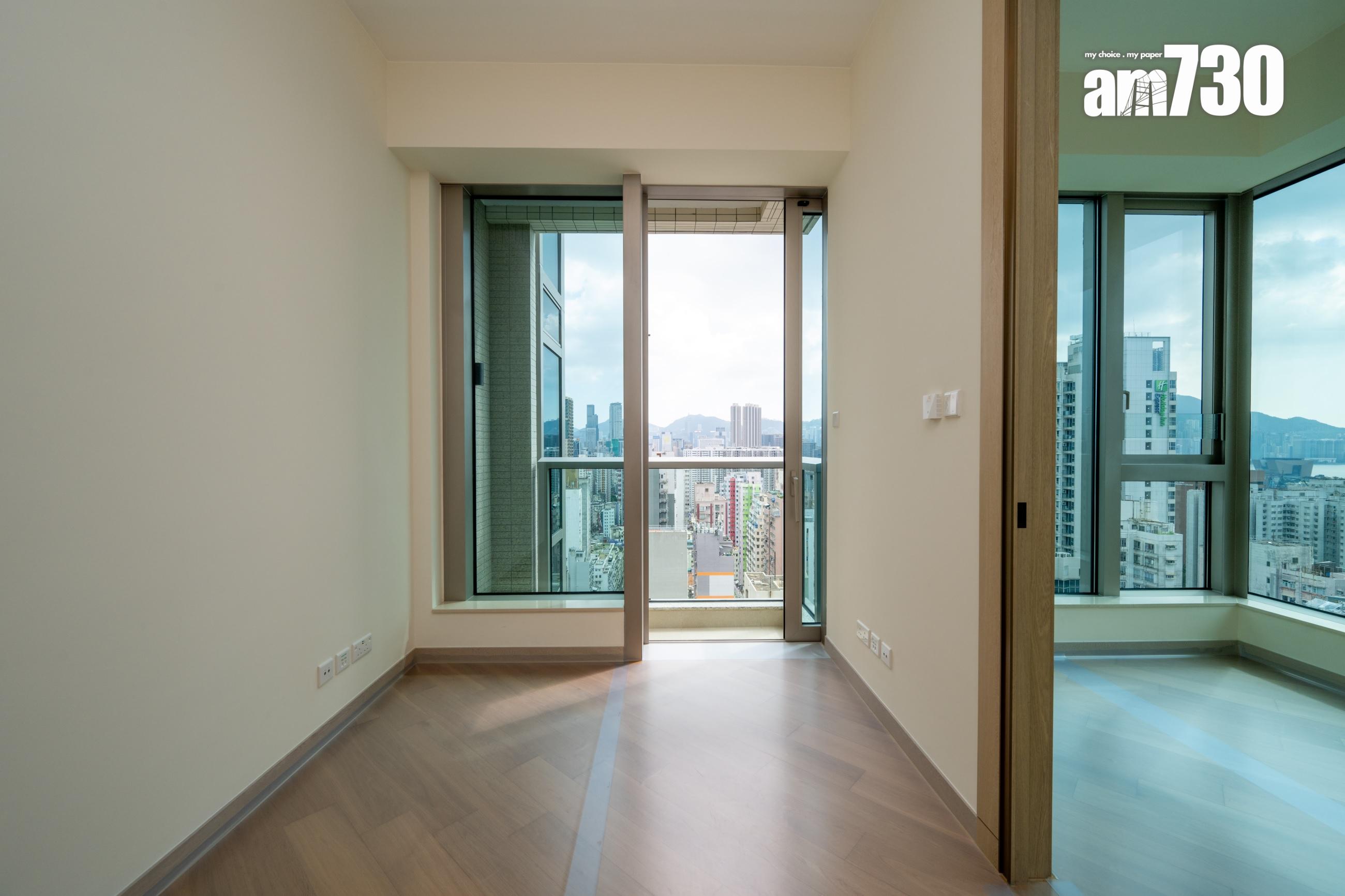 另外兩個交樓標準示範單位,屬於28樓A6室,實用面積298方呎;以及28樓B7室,實用面積320方呎,同屬一房間隔。其中B7室露台視野開揚,主人睡房採用L型落地大窗,採光度十足,擁270度維港海景。