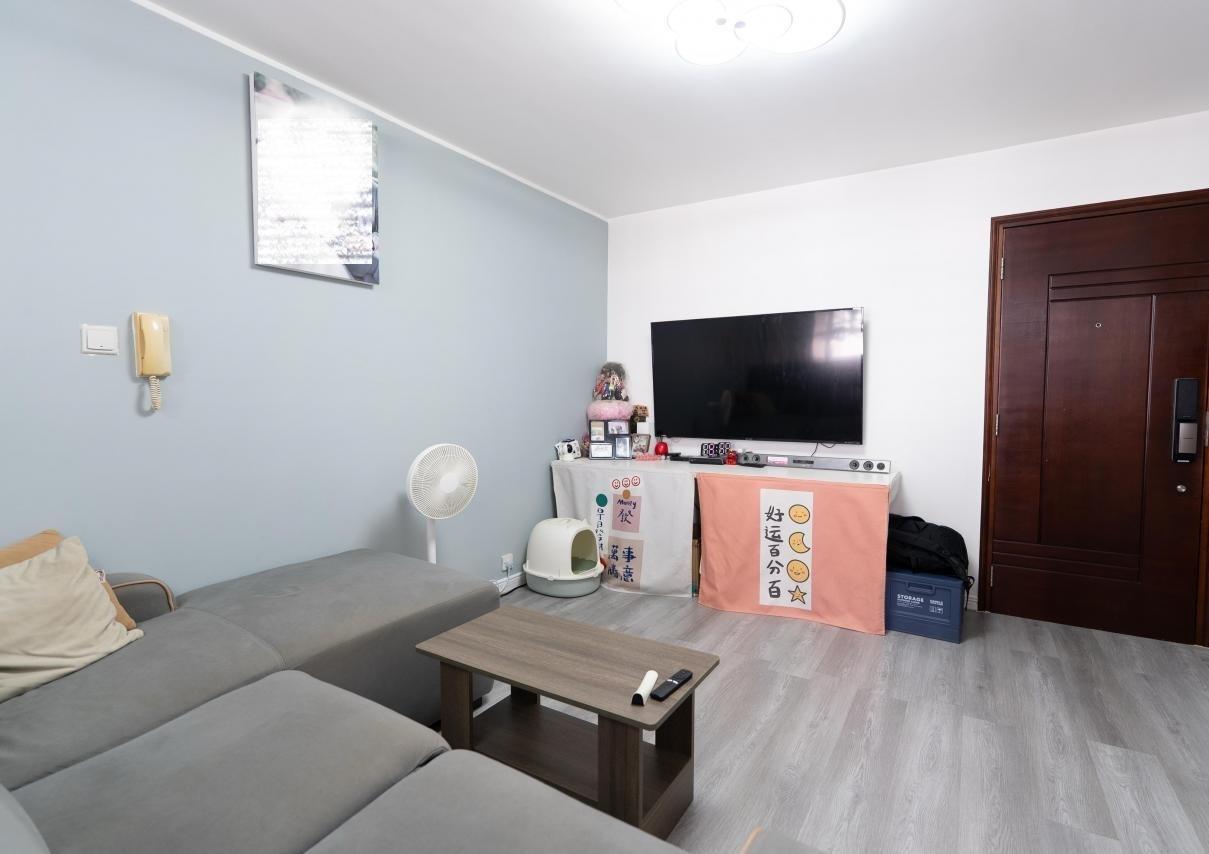 大廳擺放L型大梳化及貓貓跳台後,仍有不少活動空間,可見面積闊落。