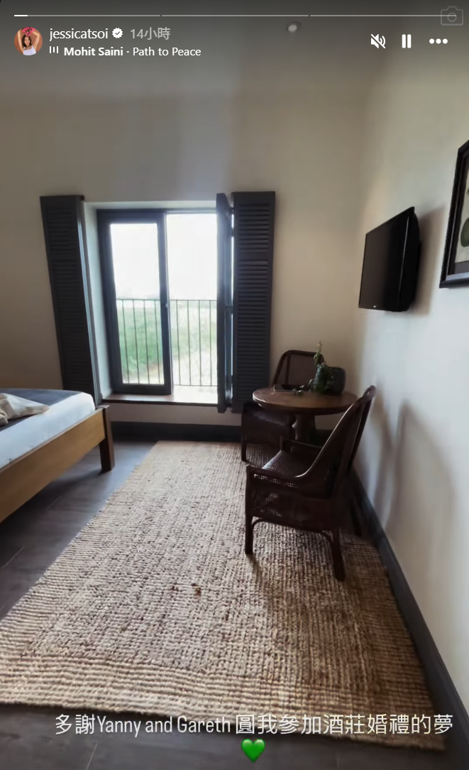 婚禮舉行在即,Cheronna在IG限時動態轉貼照片,見到Yanny正穿上裙褂,一身姊妹裙的Jessica、Cheronna則在旁為新娘打點,而Jessica亦分享澳洲靚相,與台籍丈夫陳冠廷(Steven)甜蜜合照大放閃光彈,她還出story多謝Yanny和陳考威為她一圓參加酒莊婚禮的夢。