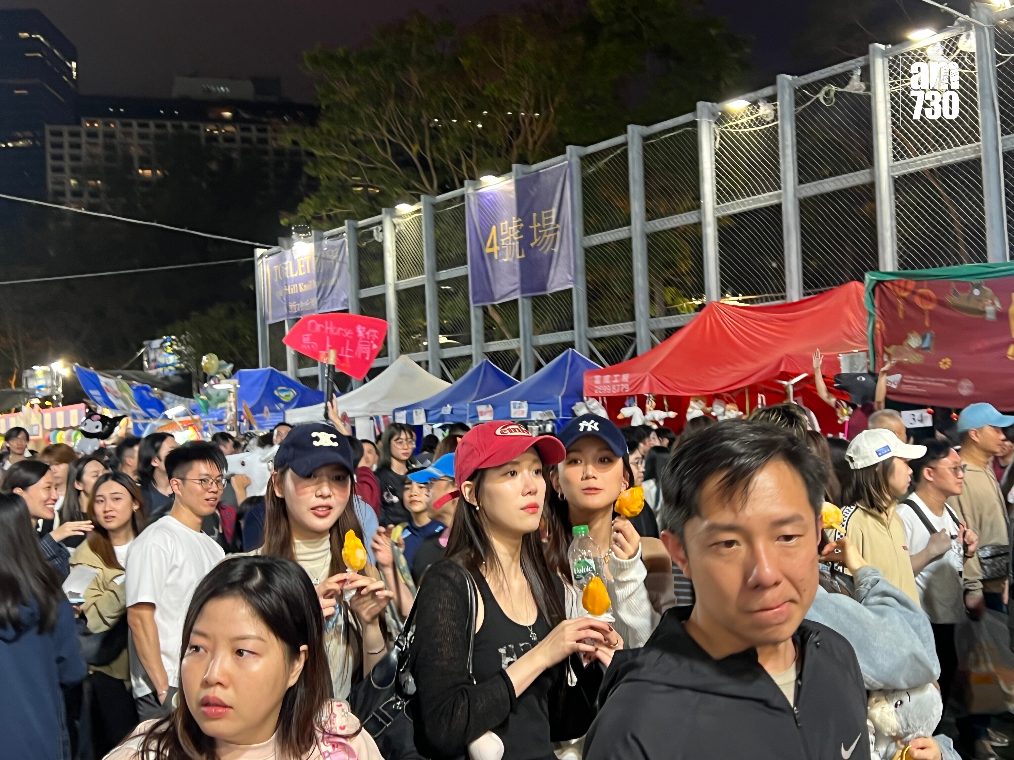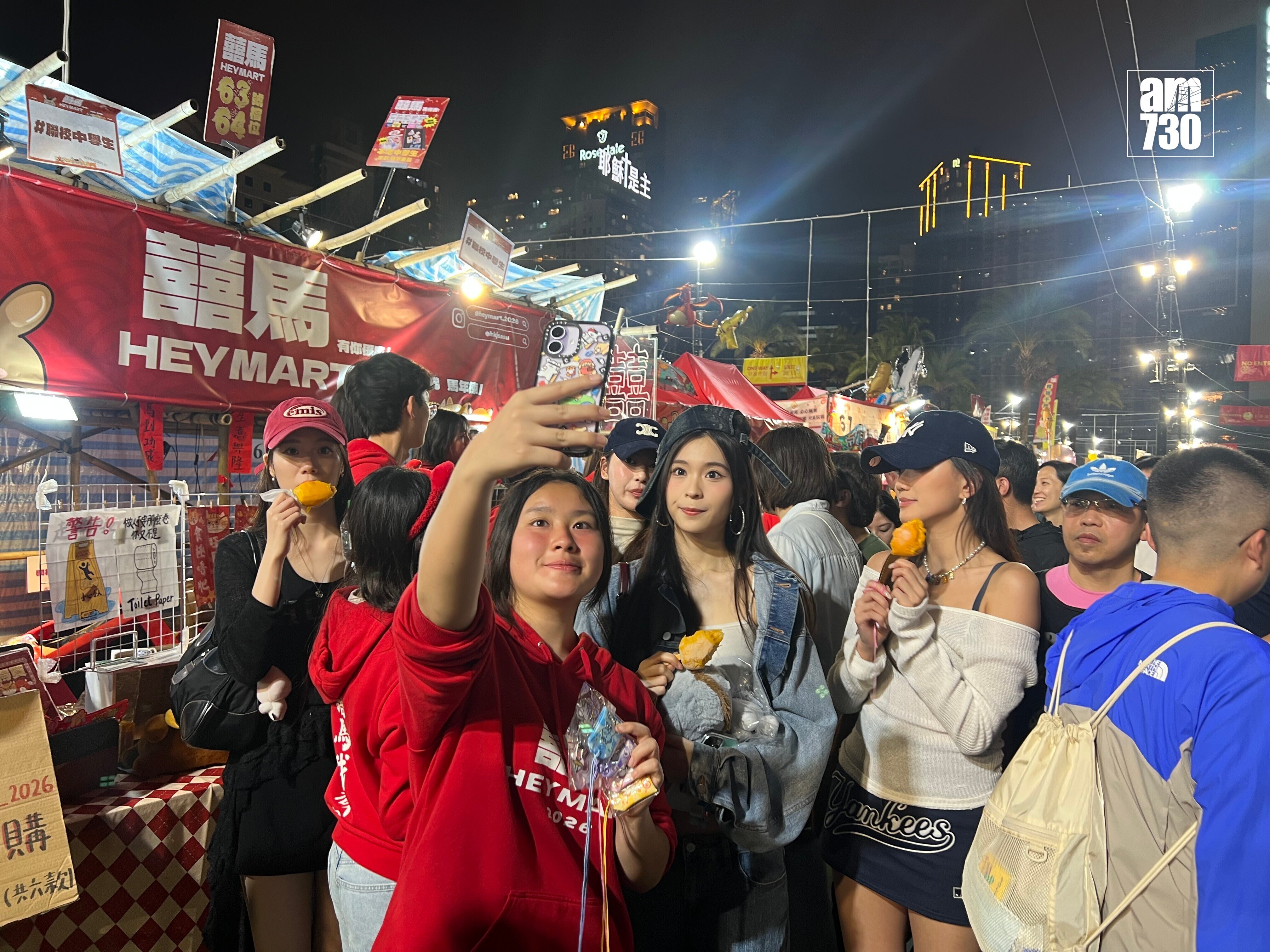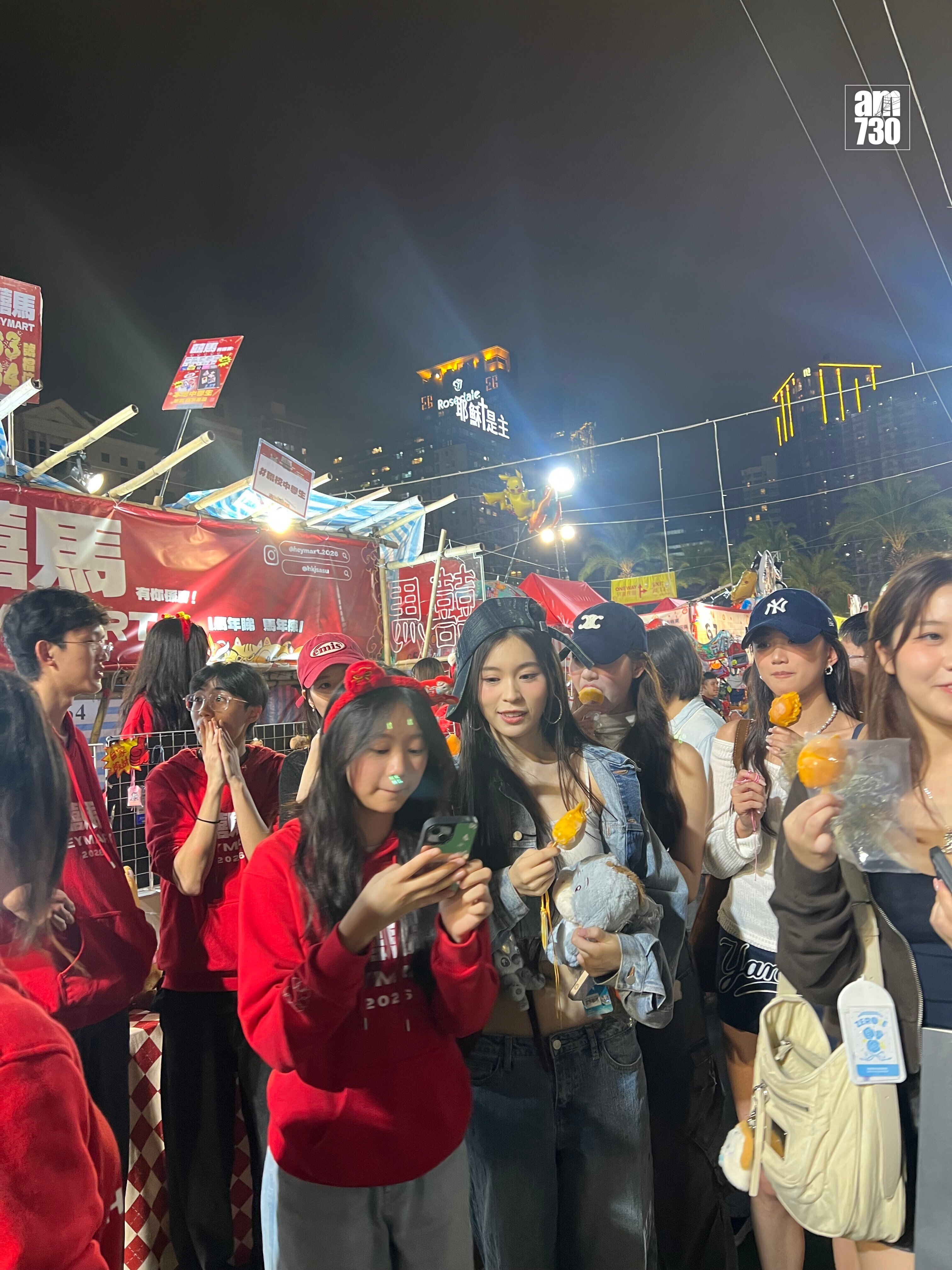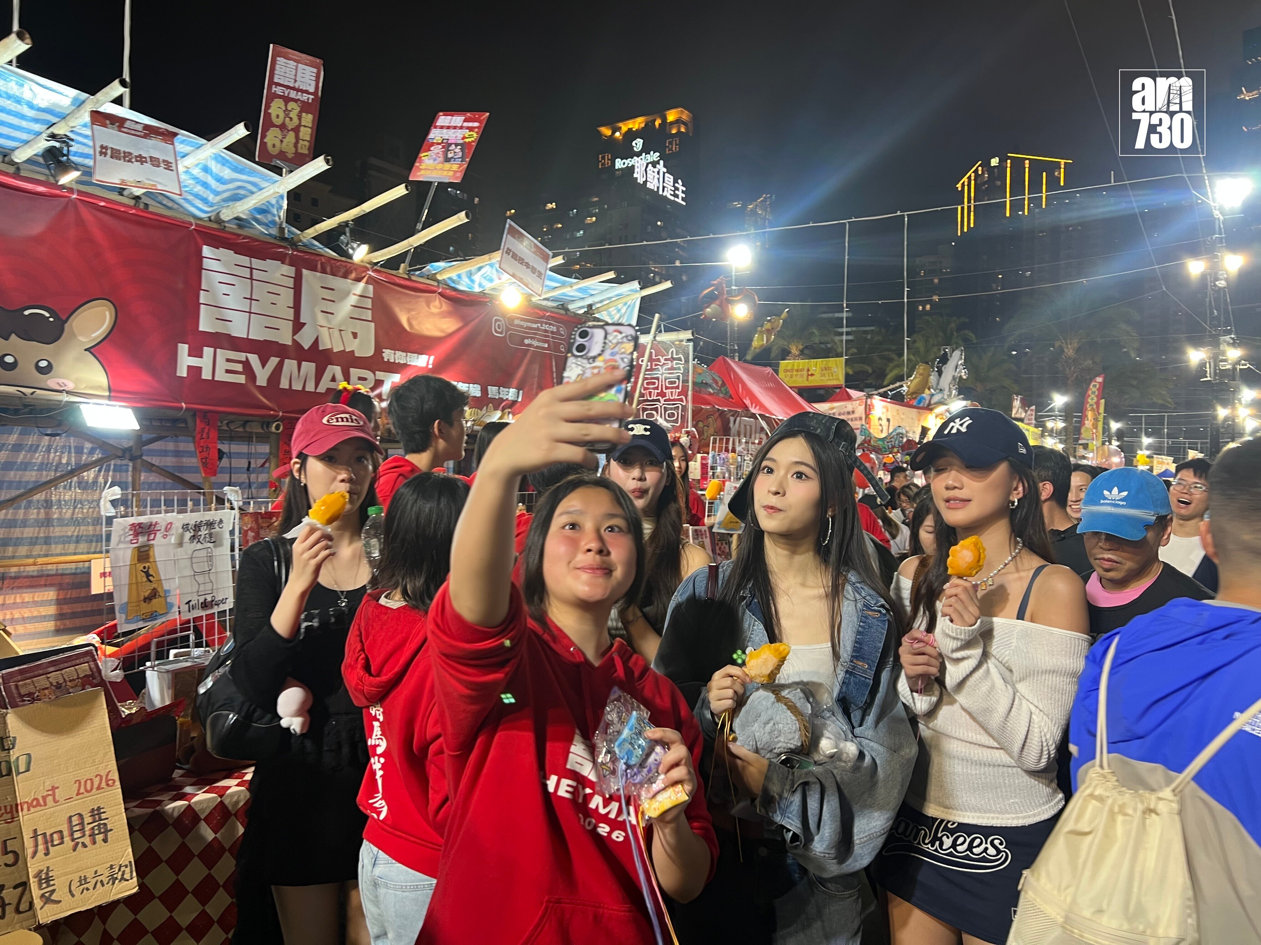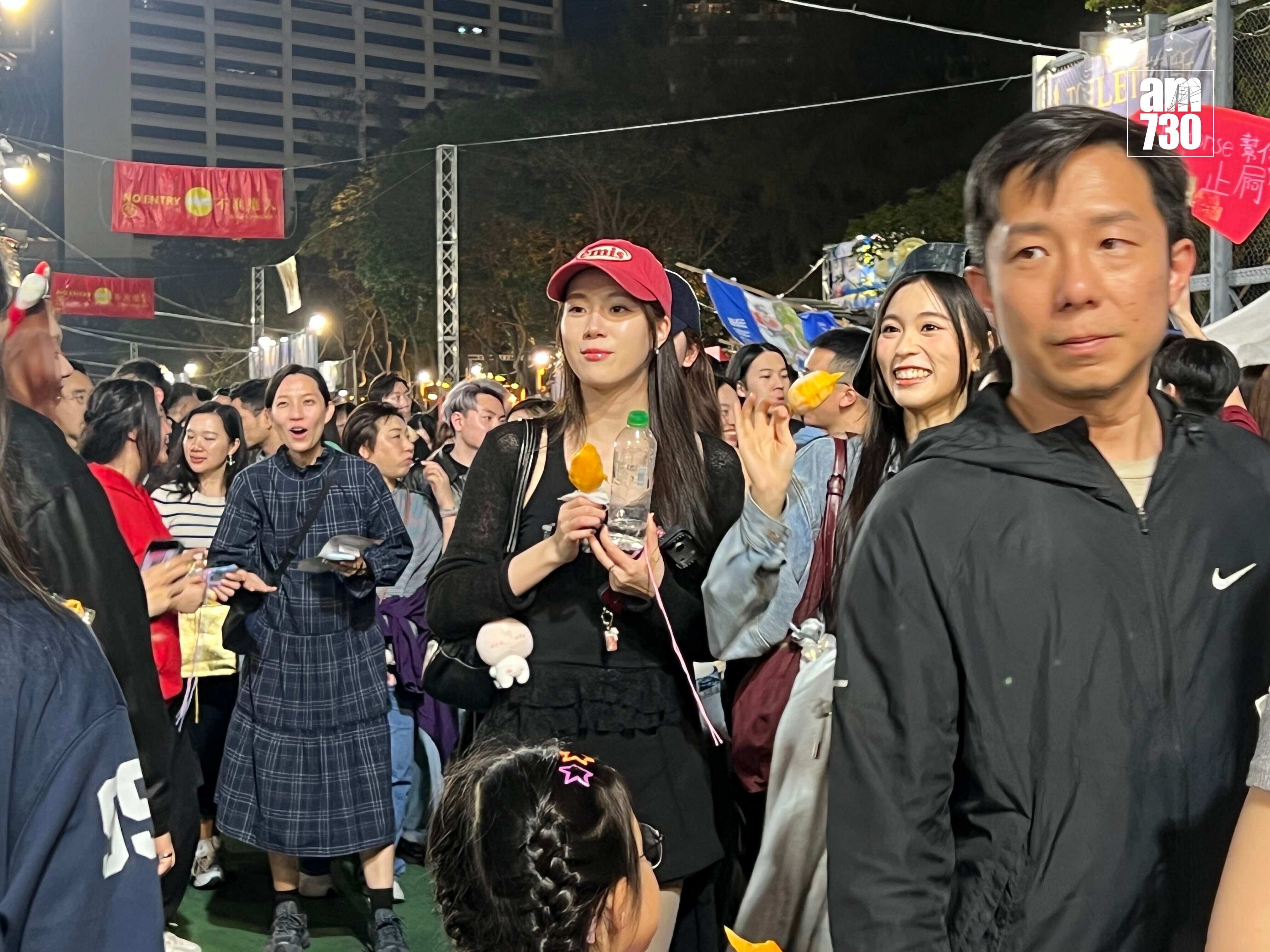 沿途有不少男士要求跟她們合照,儘管她們當時邊行邊吃,但都照單全收。期間途經一個攤檔時,有男檔主邀她們駐足看看他們檔口的作品,期間更即席獻唱歌曲給她們聽。她們四人先後在社交平台分享行年宵的合照,與此同時她們亦有到中環嘉年華耍樂,非常開心。