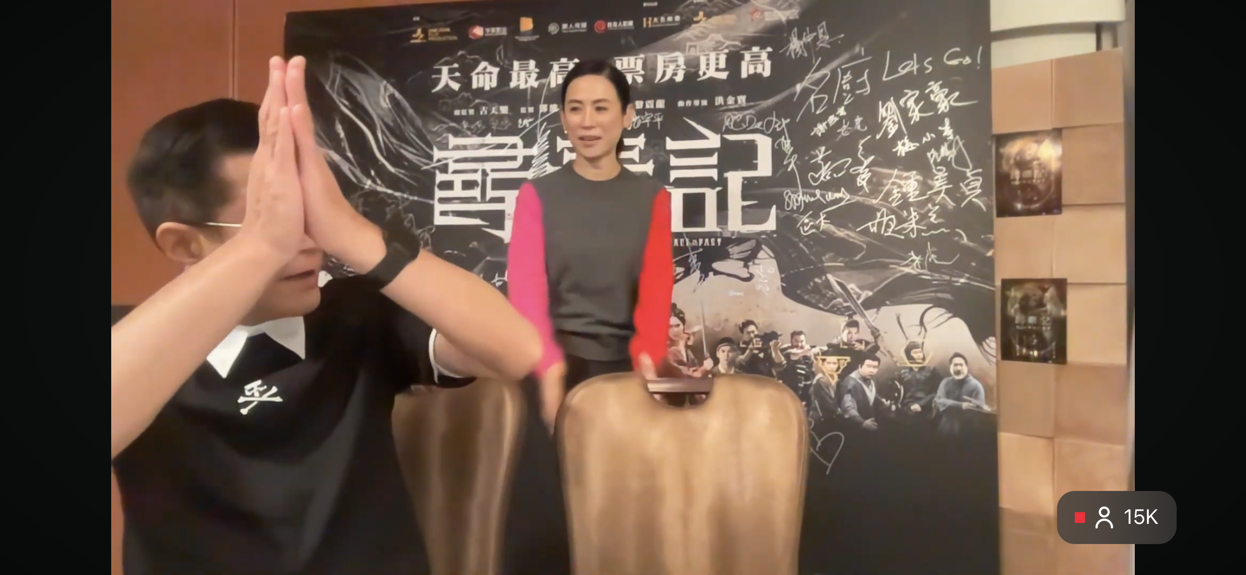 古天樂、宣萱一齊開直播,期間宣萱表情多多。