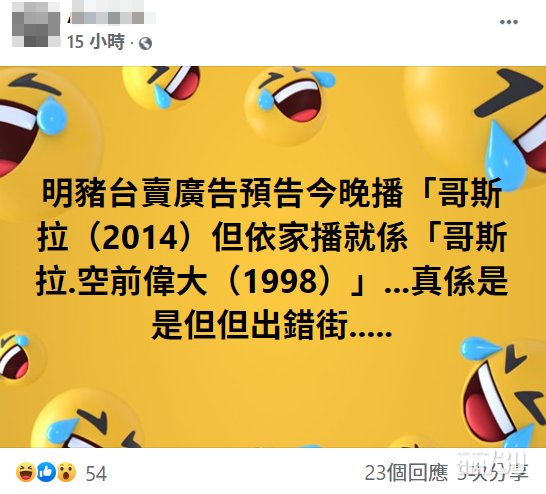 昨日明珠台晚上9點半的周末大電影時段,播出1998年版本的《哥斯拉》,然而不少網民發現「貨不對版」!