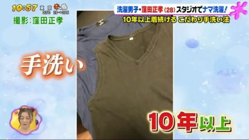 日本富士電視台劇集《是我們做的》嘅男星窪田正孝,出咗名有潔癖!佢日前喺節目中透露,每天堅持用手洗衫,因認為洗衣機會破壞衣物纖維,又將喺中學時買、著咗十幾年嘅底衫示眾,順勢教大家如何正確洗衫。窪田正孝坦言,屋企冇牛仔褲,因布料太厚唔適合手洗。另外,佢自爆一日沖三次涼,假日用6小時洗車。