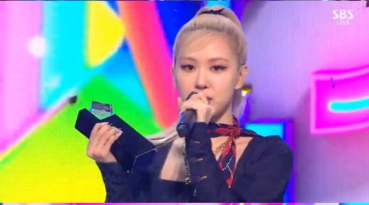 地球最紅女團BLACKPINK的Rosé,今日在SBS電視台節目《人氣歌謠》中,憑歌曲《On The Ground》奪得本周冠軍寶座,Rosé不但擊敗上周冠軍女團Brave Girl的《Rollin》,她同時上榜的還有《Gone》一曲,而且票數躋身前三甲,形成自己打自己局面。當司儀宣布Rosé成為本周冠軍後,她即時答謝fans,Rosé說:「非常感謝fans及台前幕後工作人員,這是我個人第一次得到冠軍,真的非常開心。」