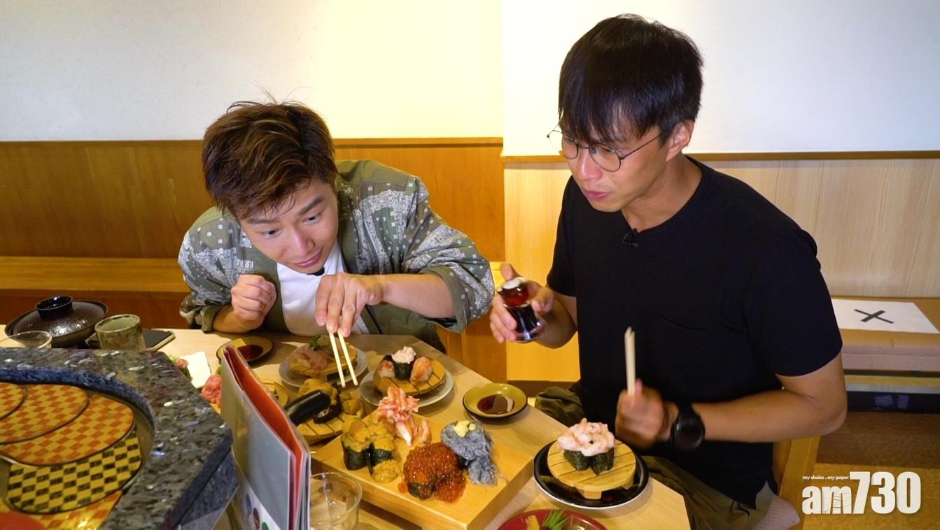 吳業坤與周奕瑋大大啖食壽司。