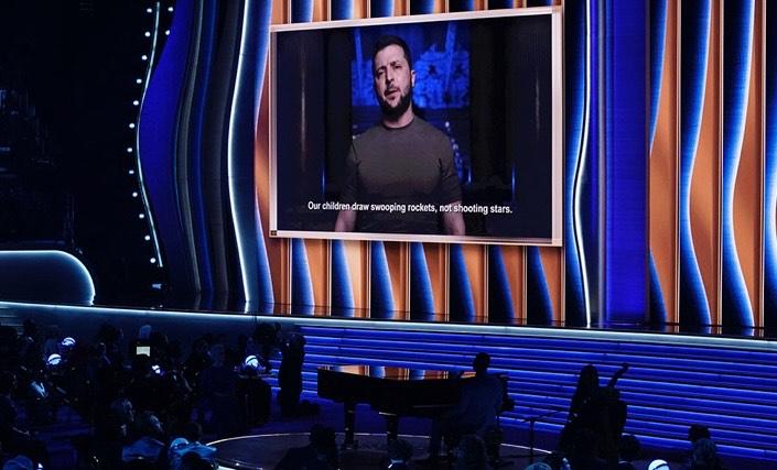 一年一度的音樂界盛事格林美獎頒獎禮在香港時間今早(4月4日),於美國拉斯維加斯舉行,期間大會播出了烏克蘭總統澤連斯基呼籲各界聲援烏克蘭的錄影片段,他促請音樂人「用音樂代替沉默」,澤連斯基謂:「甚麼是音樂的對面?是被摧毀城市和遇害者的沉寂,把你們的音樂注入沉寂,今天就把它填滿,訴說我們的故事,在你們的社交網絡,在電視上講出戰爭的真相,以你能做到的任何方法支持我們。」