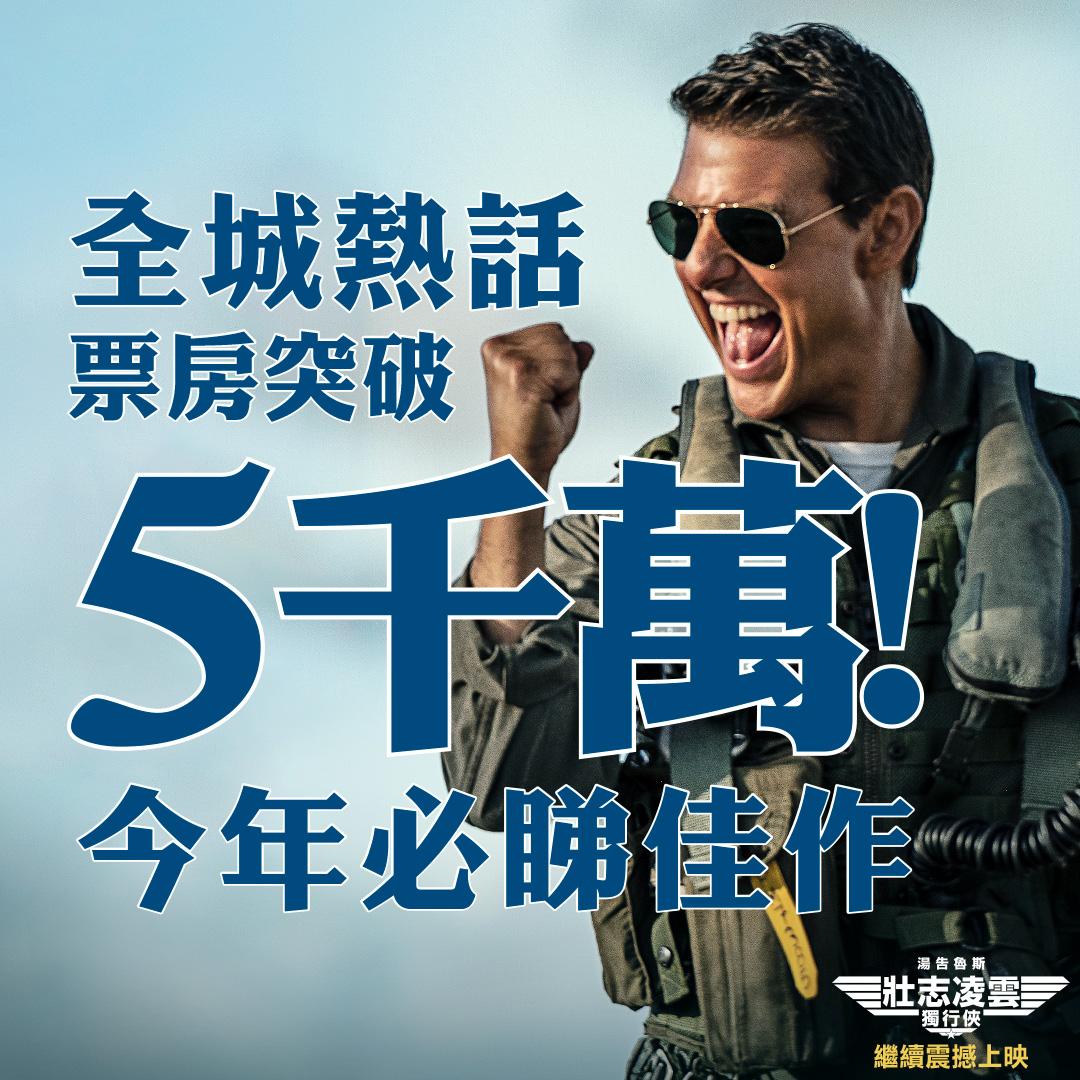 《壯志凌雲:獨行俠》氣勢如虹,在徇眾要求下IMAX版重新上畫。 《壯志凌雲:獨行俠》獲一致好評,香港票房已突破5千萬。