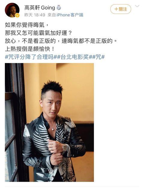《咒》在豆瓣網的評分跌至6.8分,出爐最佳男配角高英軒在微博串爆網民。