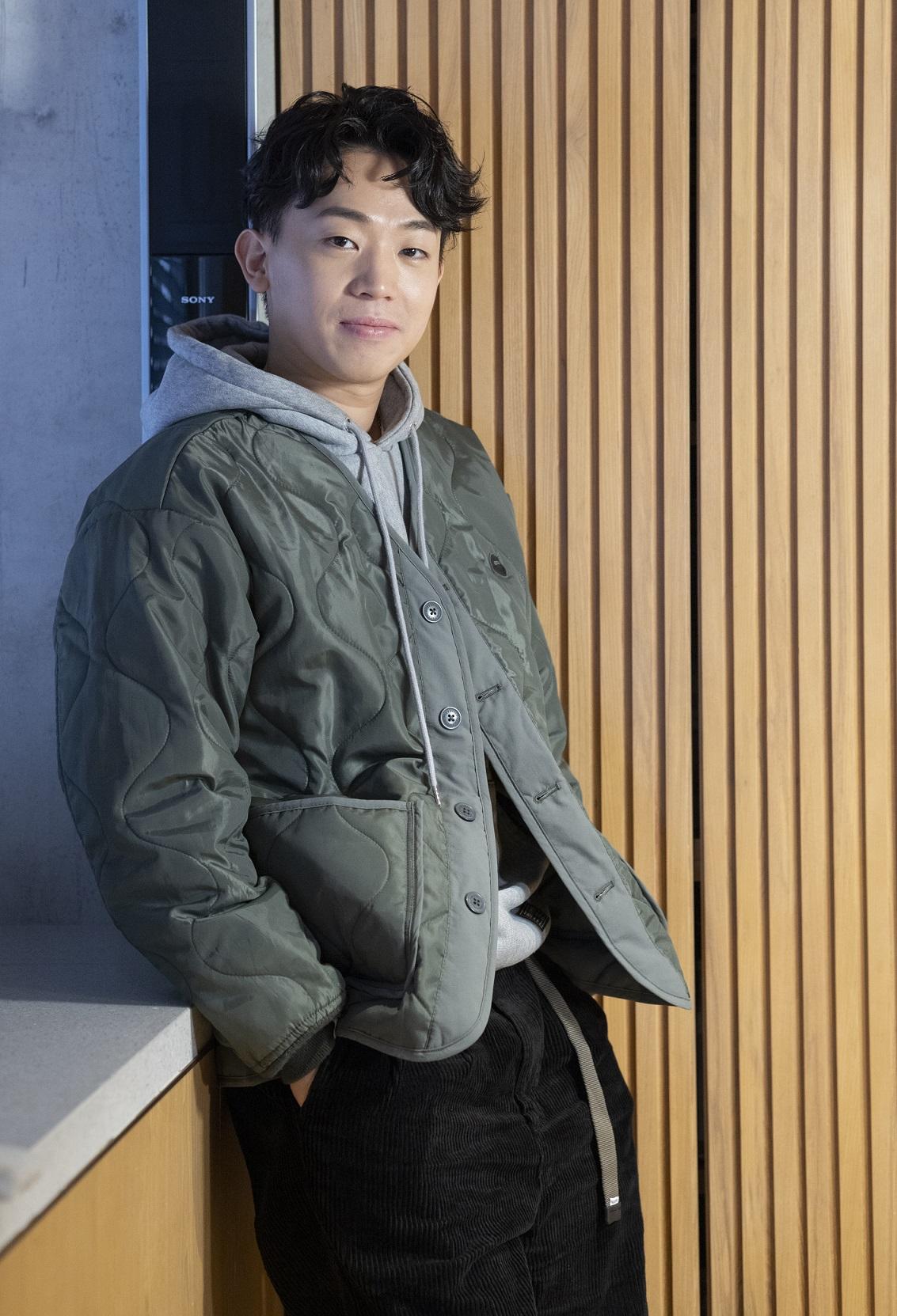 岑珈其笑言為與黃浩然導演再合作,願意操練身形拍脫戲。(蘇文傑攝) 岑珈其感激妻子全力支持他發展演藝事業。
