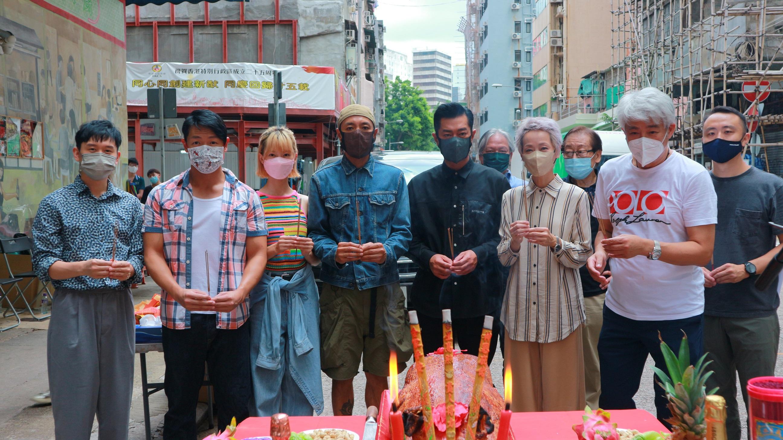 總會會長古天樂(左四)、副會長張同祖(左二),與《惡人當道》一眾演員出席開鏡拜神。
