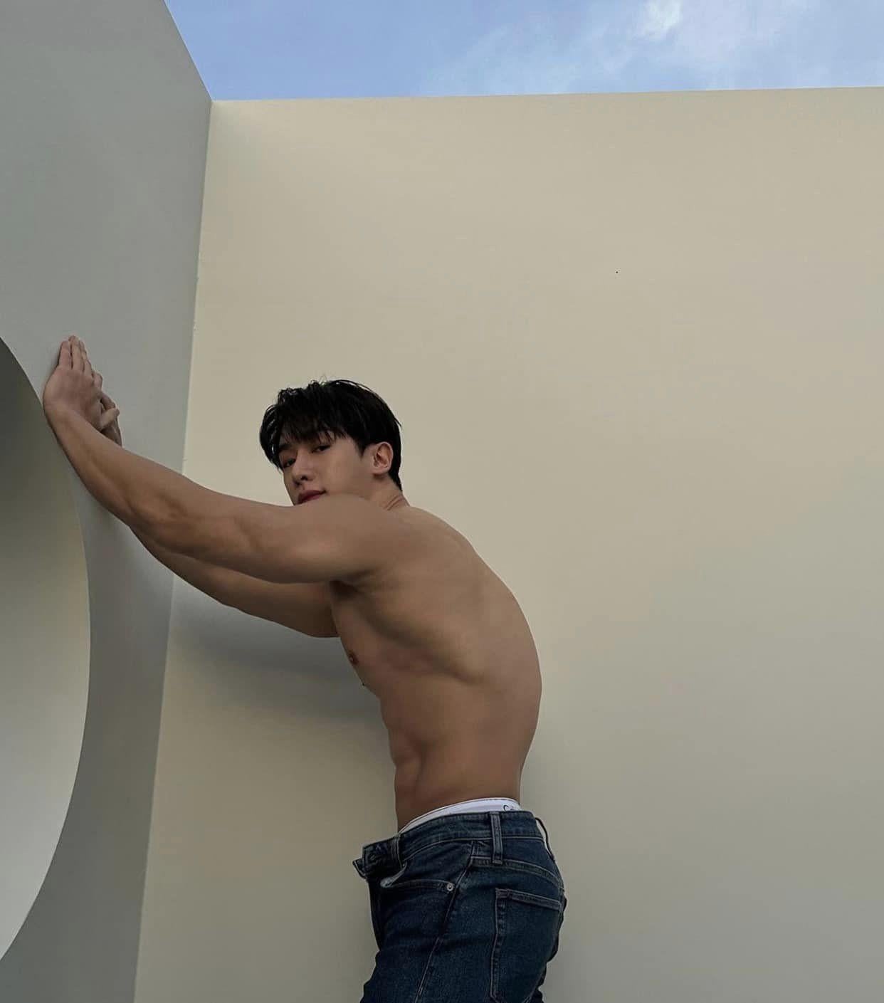 前韓國男團MONSTAX成員元虎,作風大膽又操得一身肌肉,是K-Pop界數一數二的野獸派偶像代表。