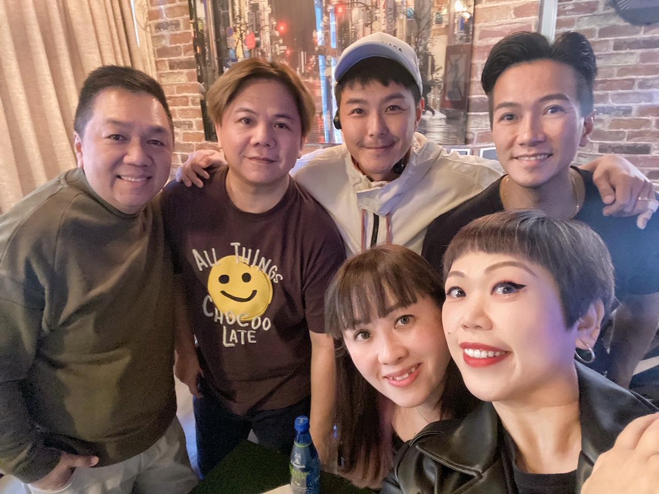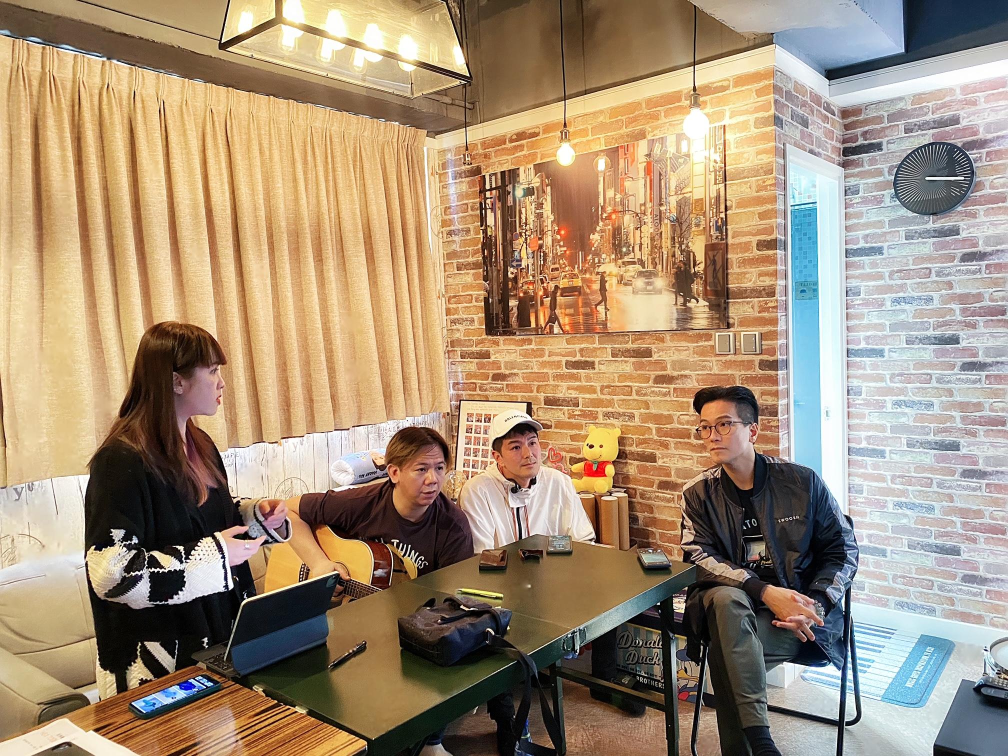 區永權、伍仲衡、蕭正楠,與Doris開會討論歌衫主題。