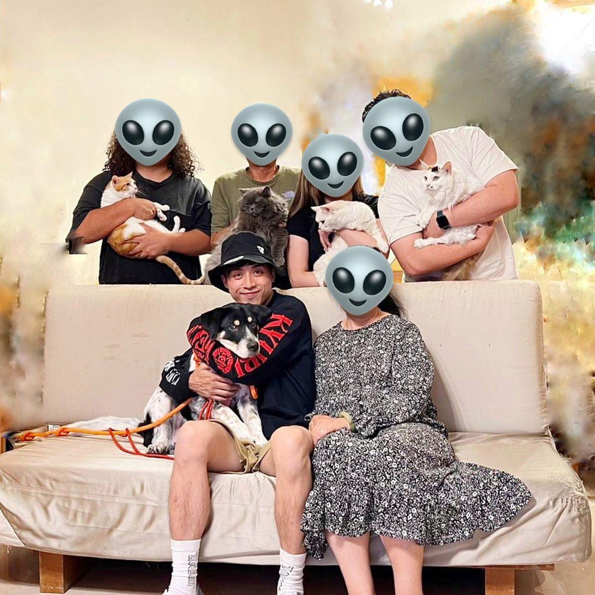 AK去年上載大合照,相中見到有4隻愛貓及新領養的狗狗。
