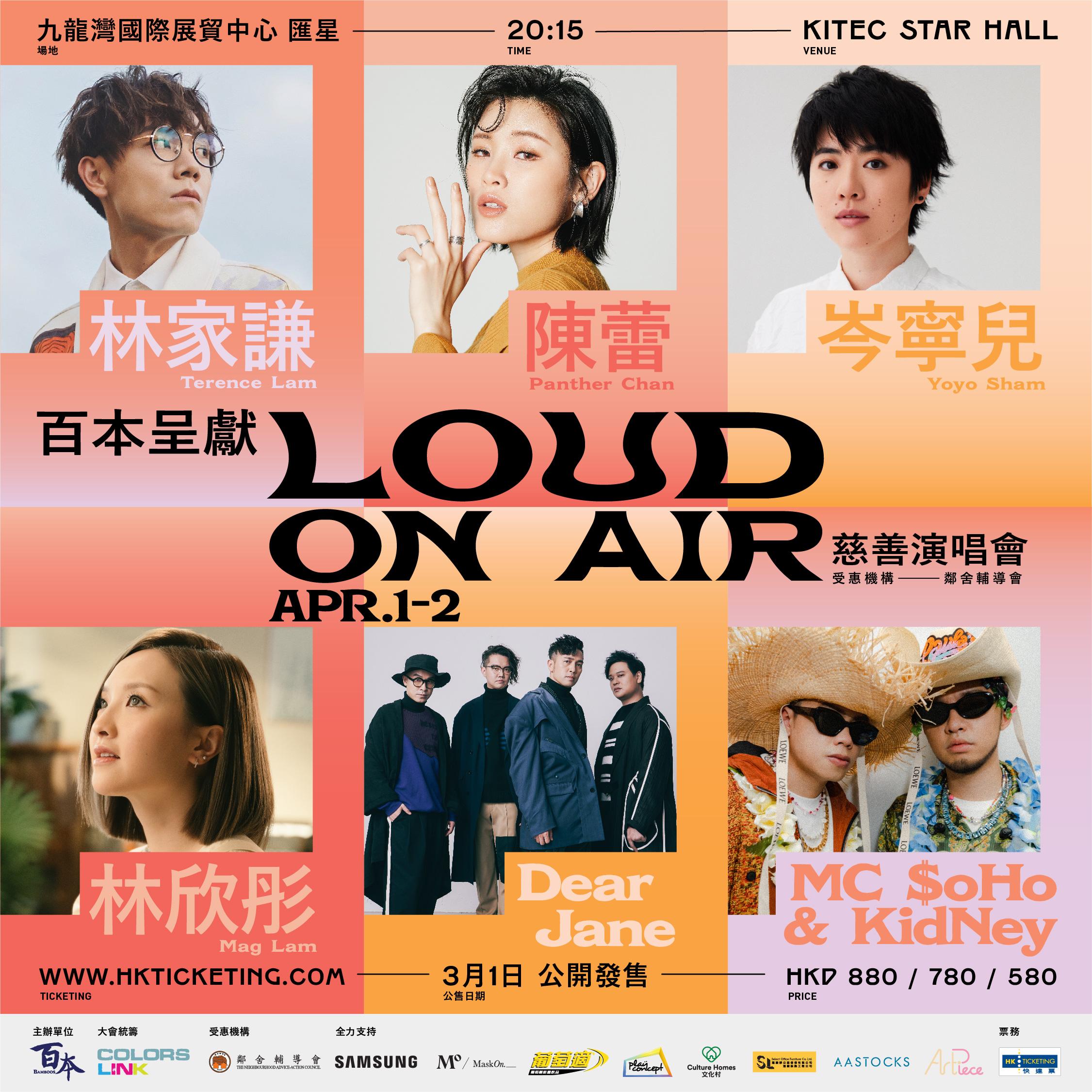 隨著香港疫情漸趨穩定,市民生活陸續復常,林家謙、陳蕾、岑寧兒、林欣彤、Dear Jane 及MC $oHo & KidNey共六個新世代歌手及組合,將於4月1及2日出席兩場《LOUD ON AIR 慈善演唱會 2023》,為成立超過半個世紀之非牟利機構「鄰舍輔導會」籌募善款,希望透過音樂振奮人心的力量,散播愛心與關懷的精神,延伸互助正能量,為正在復甦之香港社會大聲打氣。