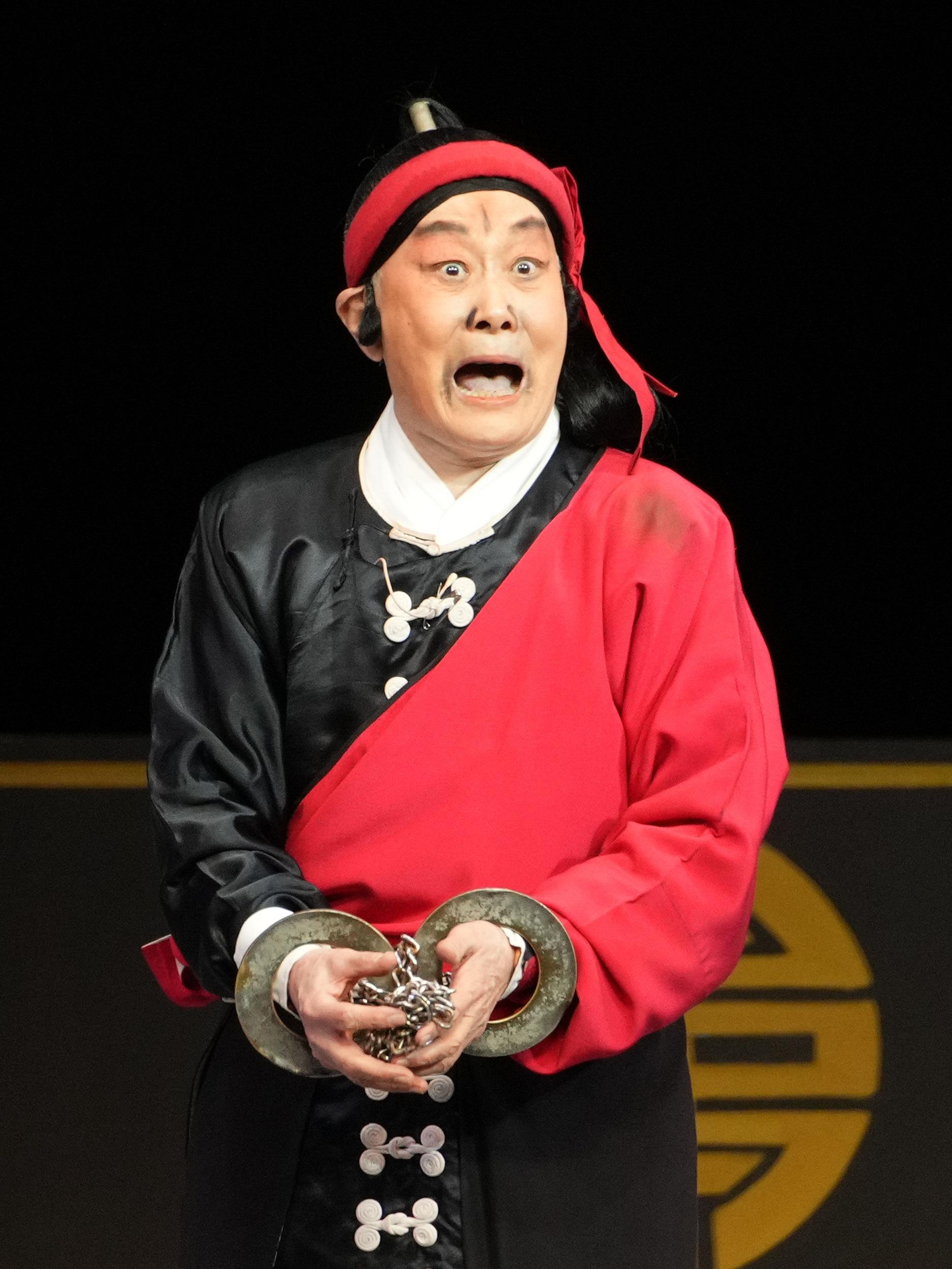 裴艷玲親自示範折子戲《平貴別窰》,演面對國難與妻子道別的薛平貴。(李睿哲攝) 裴艷玲親自示範折子戲《平貴別窰》,演面對國難與妻子道別的薛平貴。(李睿哲攝) 裴艷玲風彩依然,演活武松一角。(李睿哲攝) 裴艷玲完成示範表演,與劇團成員多謝觀眾。(李睿哲攝)