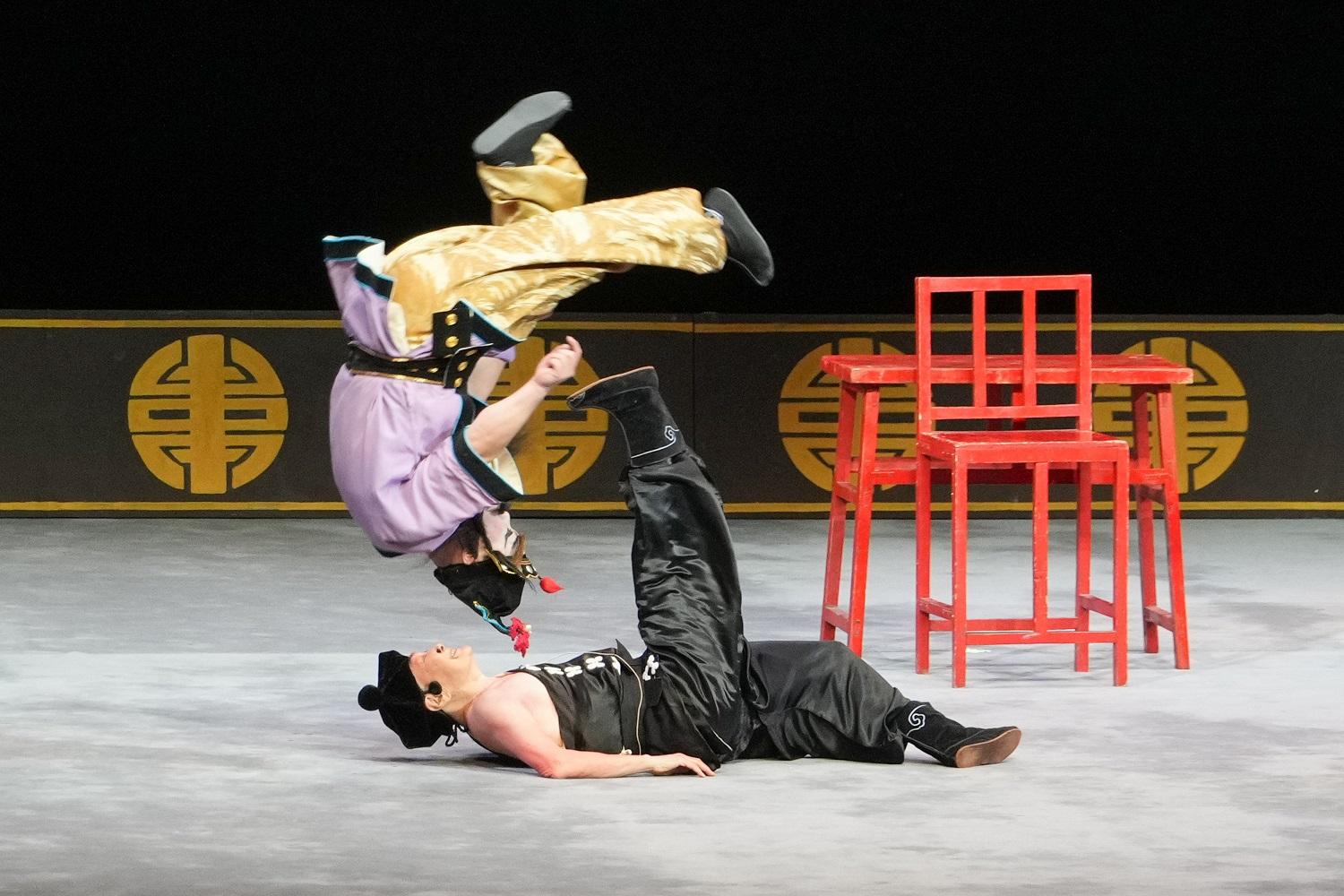 裴艷玲示範最拿手的武生戲《武松醉打蔣門神》,赤膊上陣反串演武松。(李睿哲攝) 裴艷玲示範最拿手的武生戲《武松醉打蔣門神》。(李睿哲攝) 裴艷玲示範最拿手的武生戲《武松醉打蔣門神》,赤膊上陣反串演武松。(李睿哲攝) 裴艷玲完成示範表演,隨即出席講座,大談與香港的淵源。(李睿哲攝)