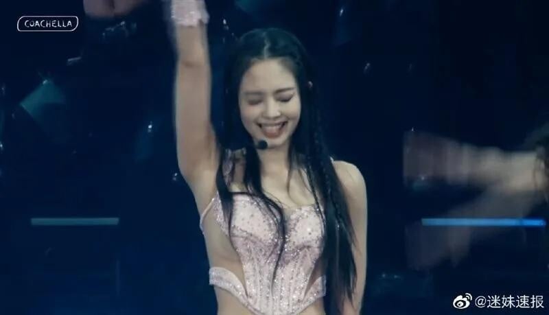 BLACKPINK在23日再登上Coachella舞台,除了表演本身相當精采外,3套服裝更是非常性感,尤其Jennie一套粉紅馬甲,胸下到側邊的挖空設計,讓許多歌迷看了驚呼「讓胸型『無所遁形』」,瞬間引爆網友討論,「Jennie衣服好性感」更是直接飆進微博熱搜榜。