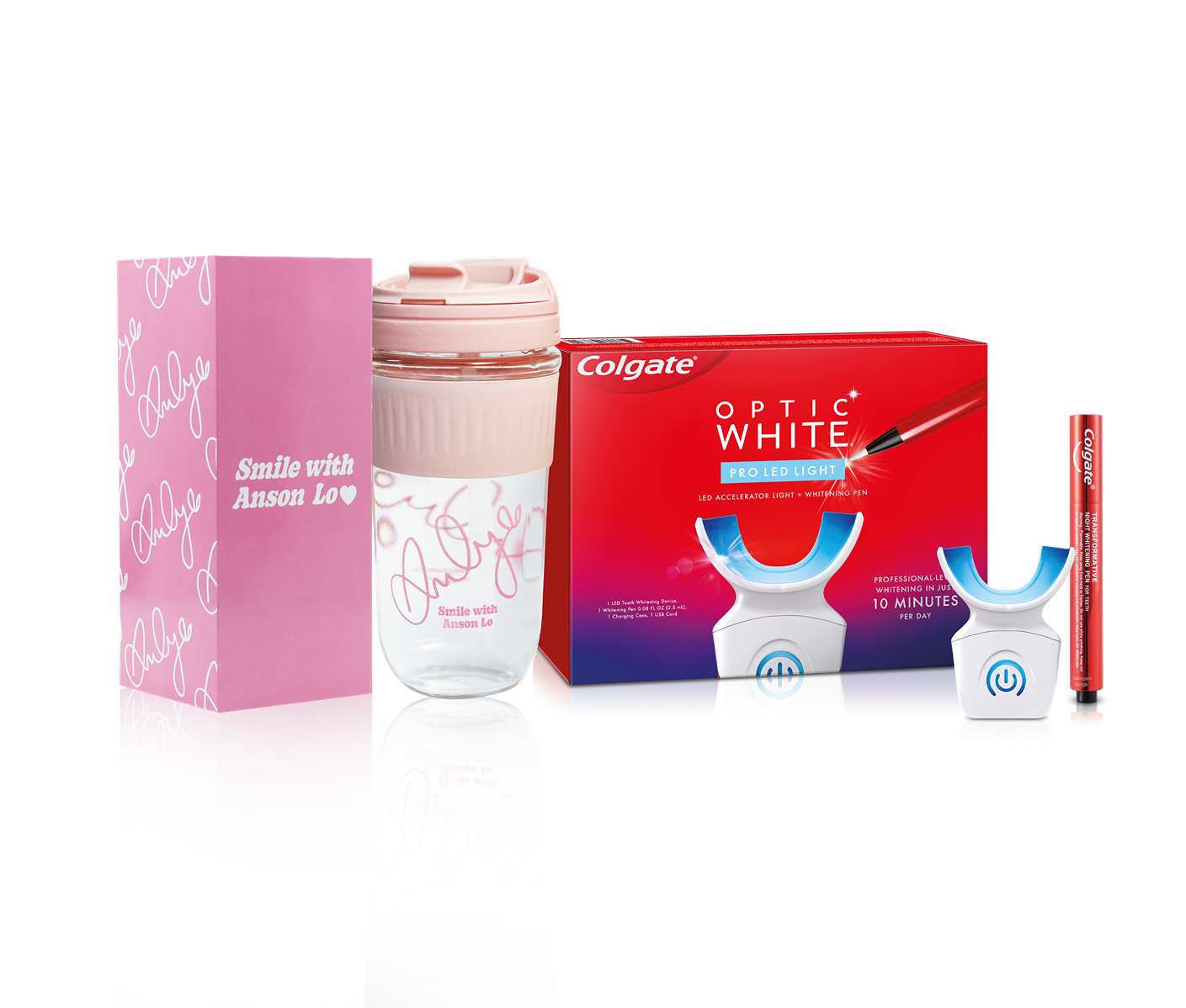 高露潔Smile with Anson Lo限量版光感.白LED藍光美白牙齒套裝連隨行杯