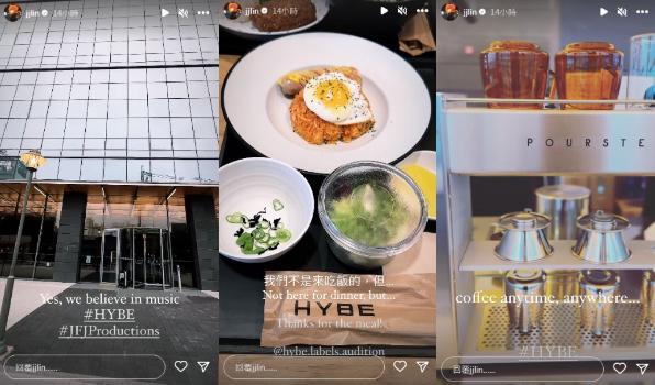 林俊傑28日在IG發文,透露他在南韓經紀公司HYBE娛樂,還曬出一系列的照片,包含該公司的員工餐、咖啡吧等,打趣寫下「我們不是來吃飯的」,也表明「Yes,we believe in music」等話語;他最後也曬出與SEVENTEEN成員JUN(文俊輝)的合照,並配文寫下「New coffee bro」,同時文俊輝也發出2人的合照,俏皮留下「比耶」的表情符號,並標註對方。