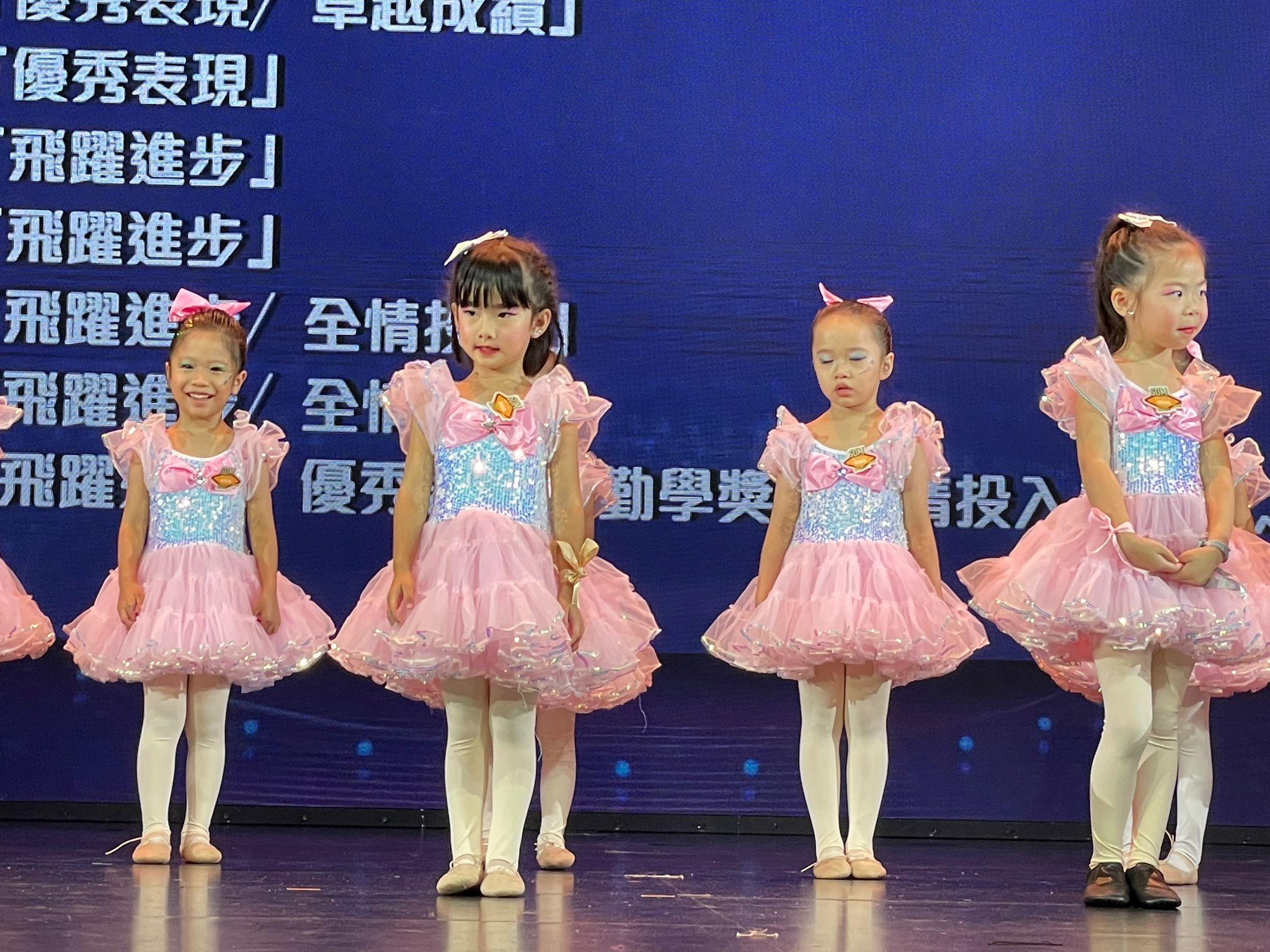 劉美娟 囡囡日晴(中)學習芭蕾舞多年,吳若希囡囡 Giselle(右四)獲頒優秀表現獎。