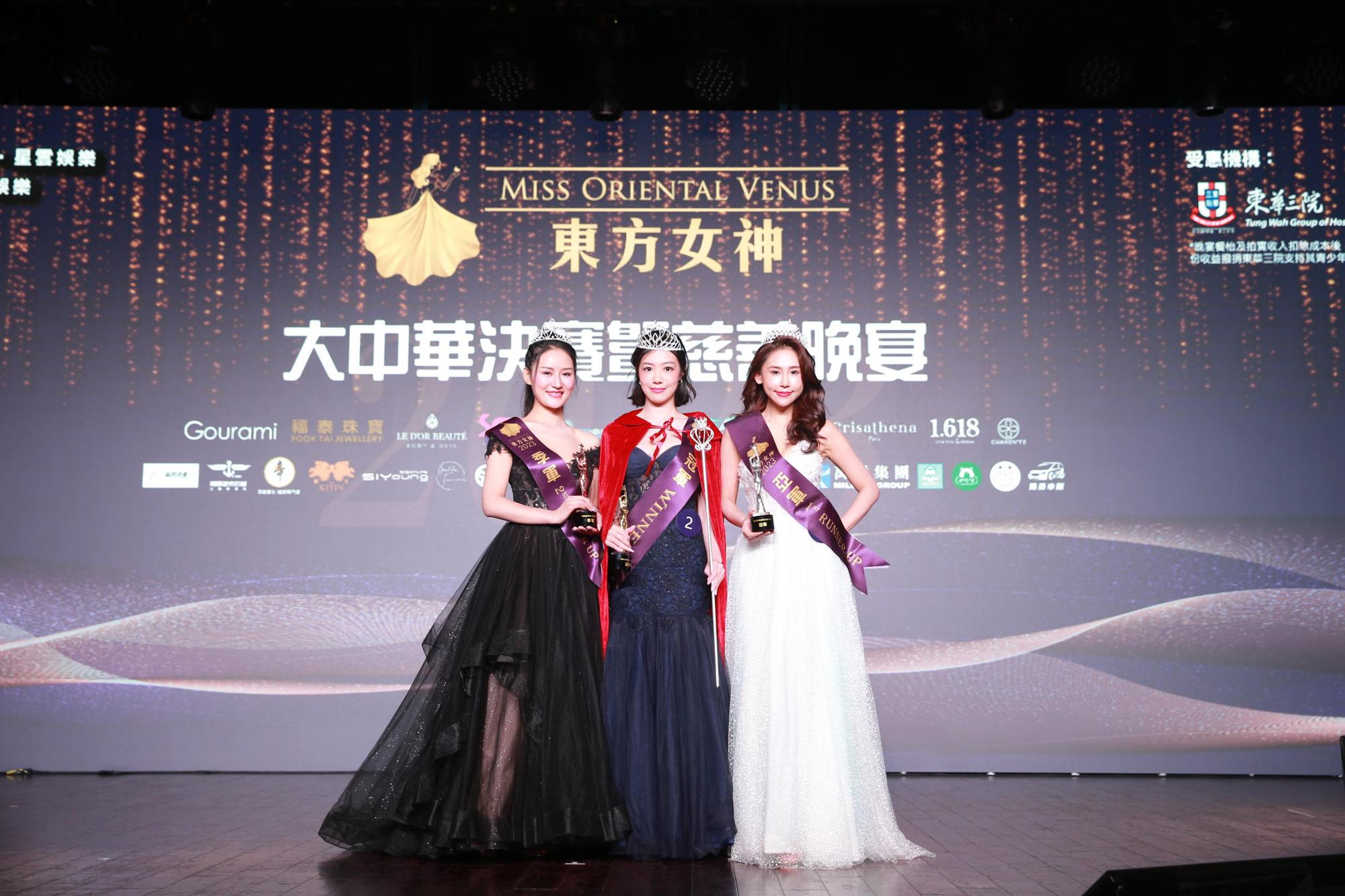 《東方女神2023》決賽暨慈善晚宴昨日(16日)在灣仔舉行,大會主席王錦睿與羅霖、胡定欣、周美鳳、莊思敏及何國鉦組成最強評審團,一致選出2號來自成都的佳麗梁詩琦成為冠軍,同時她更獲頒「最佳才藝」大獎,成為雙料冠軍。來自青島的8號史璐瑤及來自成都的1號許瑋則分别成為亞軍及季軍得主,5號哈爾濱佳麗周闊被獲頒「最上鏡小姐」,及身材澎湃的台灣佳麗江雨恩被在場嘉賓投票而成為「最具人氣」佳麗。