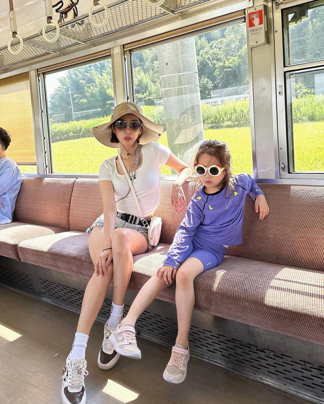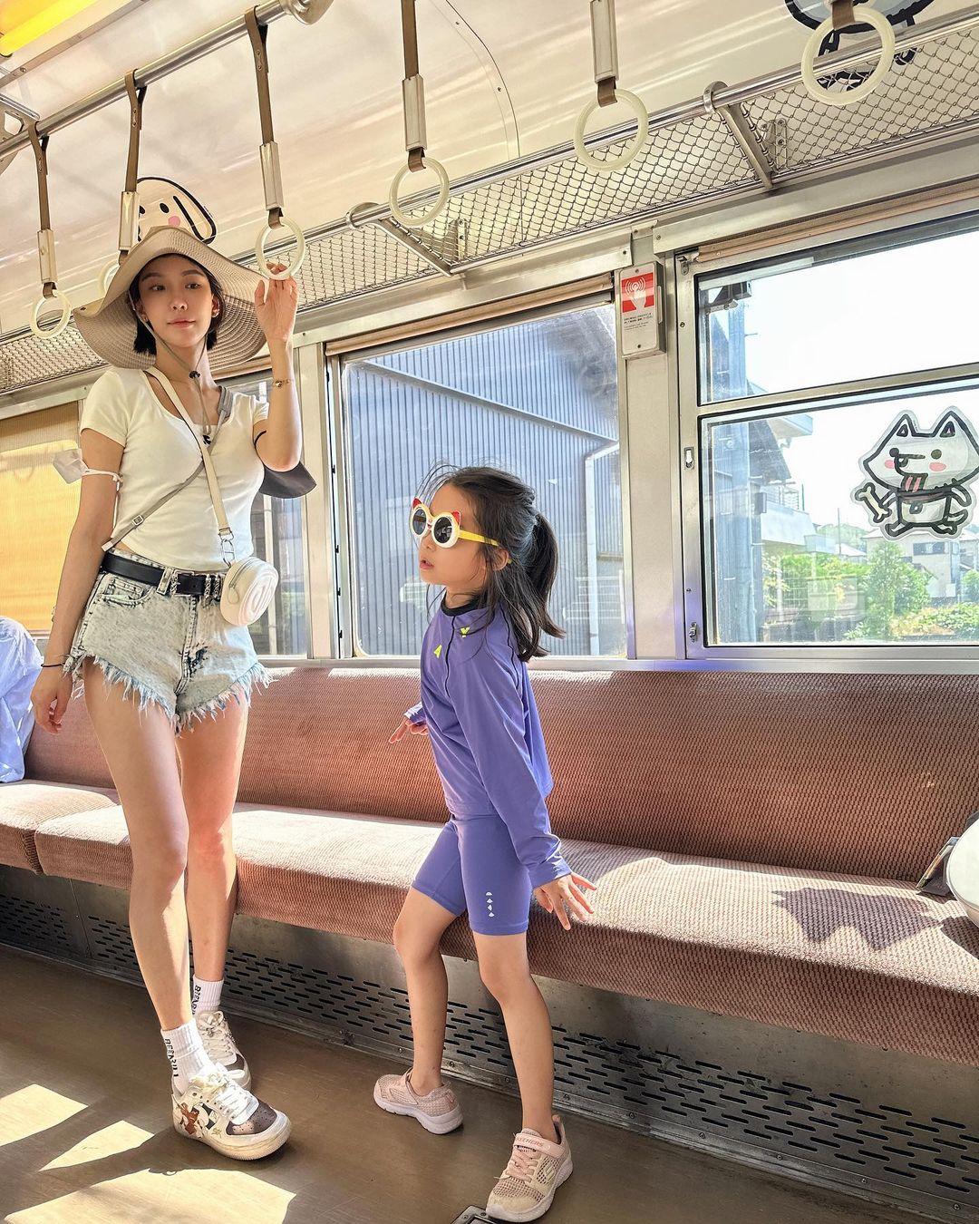 齊嬌與大女Tittania到關西旅行,兩母女更齊齊在火車上晒腿。