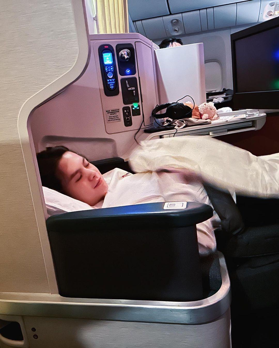 Alton與Tiger則在限昤動態貼出在機艙內的照片,二人都分享在機上的伙食,Alton有得擦鮑魚最威威。從Alton的照片見到Tiger睡覺的照片。從照片推斷,他們貼的照片都是前往墨爾本的那程飛機。