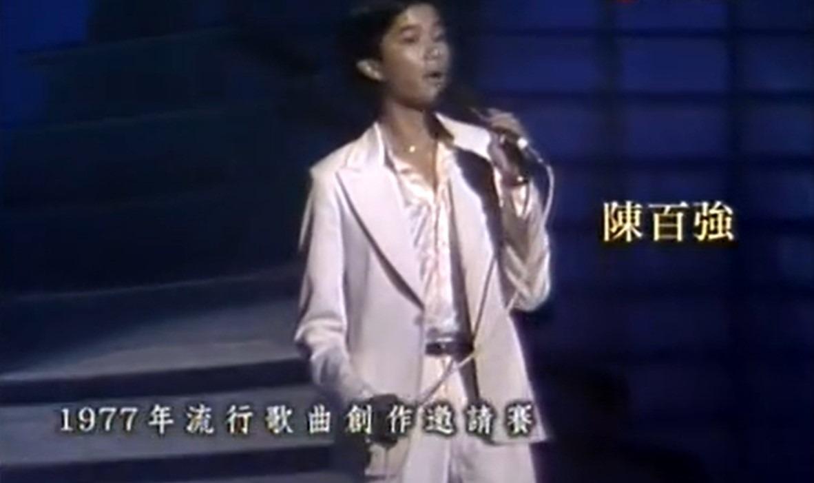 1977年,19歲的陳百強作曲及主唱《The Rocky Road》,參加無綫主辦的流行歌曲創作邀請賽,奪得季軍。因而獲得無綫賞識,簽約入行。(網上截圖)