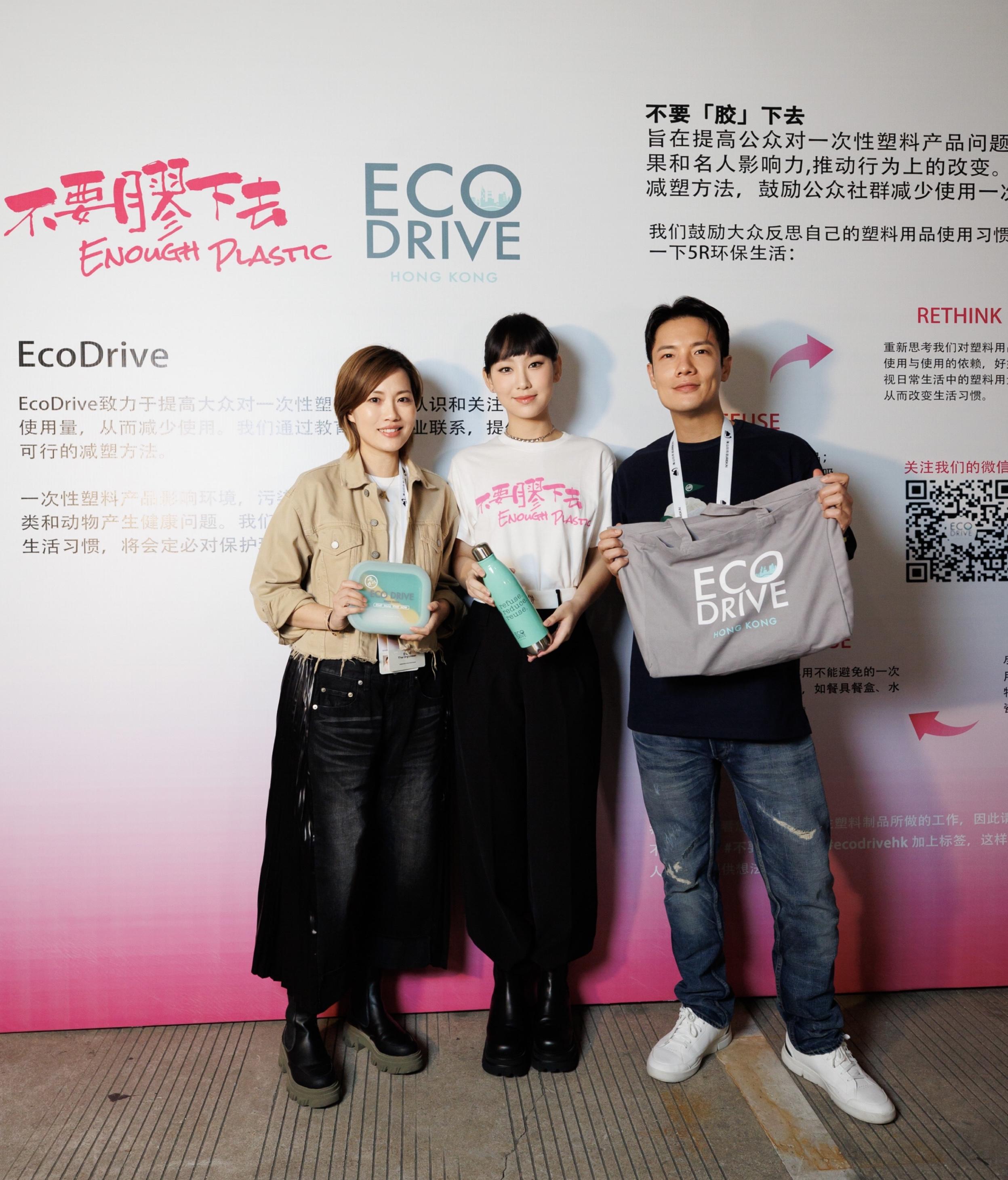 (左起)Eco Drive 聯合創始人劉清儀女士、炎明熹、Eco Drive 名譽顧問丁子高